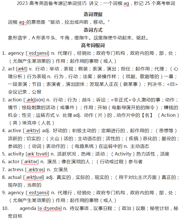 英语角|英语速记单词:一个词根ag,秒记25个高考单词