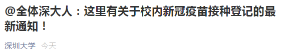 今天,深圳大学发布信息称,在知情、同意、自愿的前提下为师生员工免费接种新冠疫苗。