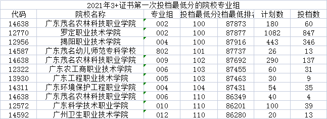 21年中罗定职业技术学院和揭阳职业技术学院第一次投档最低分100分,到了22年罗定职业技术学院投档最低分171分;揭阳职业技术学院投档最低分161分。不得不说3+证书也是越来越卷了。