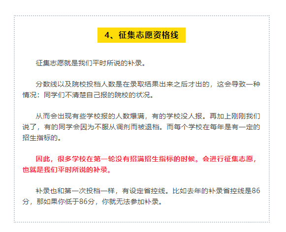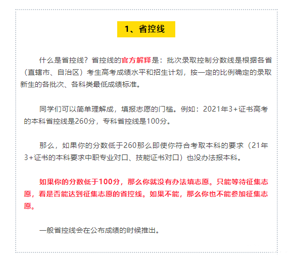 在填写志愿过程中,同学们经常会查找各院校往年的分数线是多少?但是其实分数线也是不同的,分别有省控线、第一次投档线、专业分数线、征集志愿资格线(补录分数线)等等。