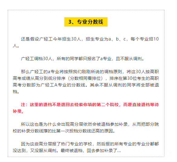 那么,被调档了就会被录取吗?不一定!!!因为这里会涉及到另一个概念:专业分数线。
