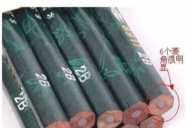 ⑤2B铅笔的形状:一般为6角,很对称。铅笔本身很均匀,这样的是比较不错的。