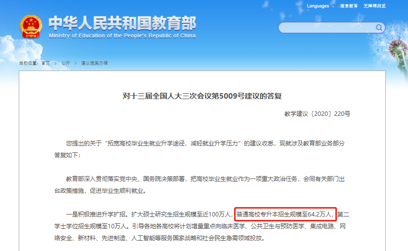 全国专插本招生规模将由32.2万人扩招至64.2万人!