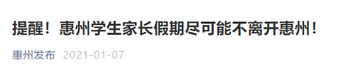 日前,惠州市教育局发布《致惠州学生家长的一封信》,建议假期尽量减少跨市出行,尽可能不离开惠州。少串门、少聚餐、少到人群密集场所。离开惠州的要做好行程记录,返校时在健康卡中注明行程。