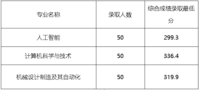 大数据工程技术专业最低综合分为324.59分、汽车服务工程技术专业最低综合分为324.36分、机械设计制造及自动化专业最低综合分为304.84分。