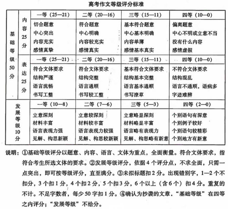 作文评分准则参考