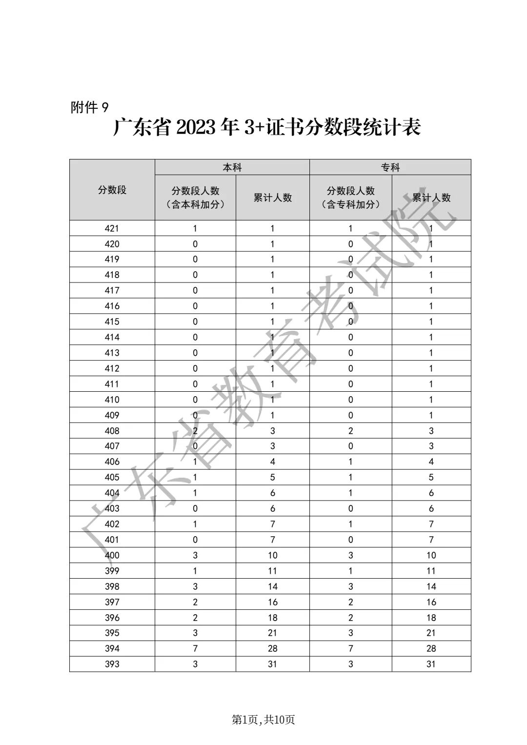 根据最新2023年“3+证书”一分一段表,今年最高分为421分,400分以上的同学今年只有10个,这一分数层次可以说是闭着眼睛挑学校的存在!
