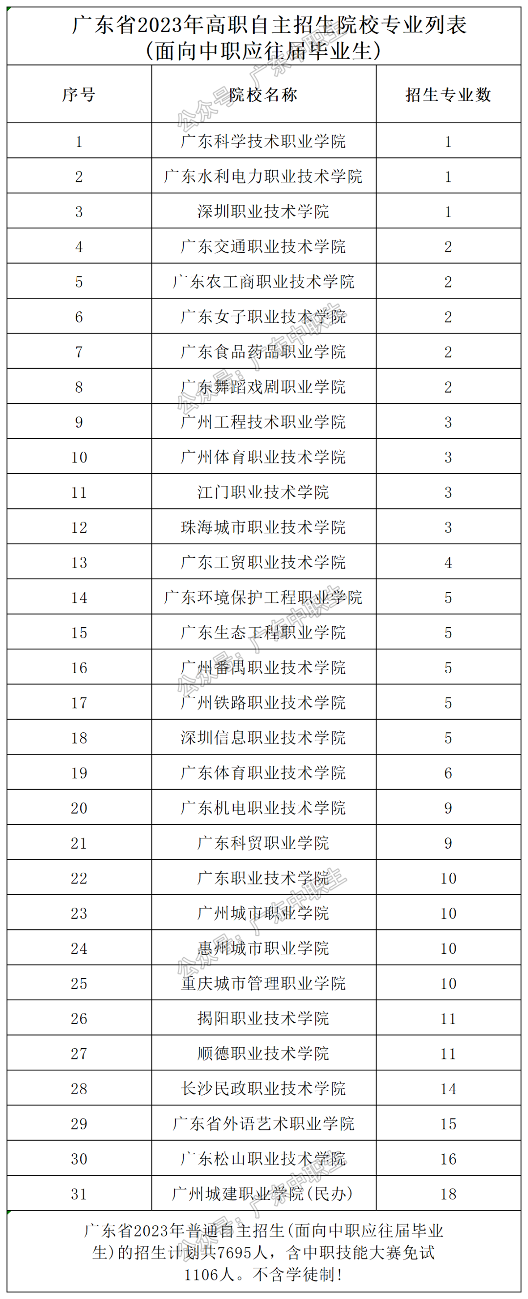 大撕兄整理了一下计划,发现在75所院校里有31所学校是面向中职考生,而招生计划只有7695人。其中公办招生专业最多的是广东松山职业技术学院、广东省外语艺术职业学院、长沙民政职业技术学院。