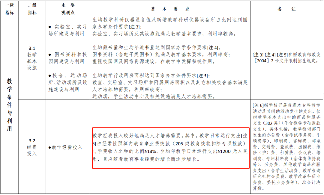 3.仪器设备。普通本科学校生均教学科研仪器设备值,理、工、农、医类和师范院校应不低于5000元,人文、社会科学类院校应不低于3000元,体育、艺术类院校应不低于4000元。