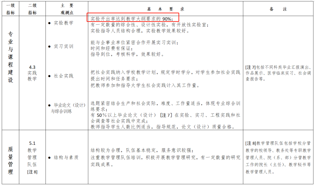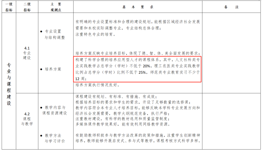 5.实习、实训场所。普通本科学校必须拥有相应的教学实践、实习基地。以理学、工学、农林等科类专业教育为主的学校应当有必需的教学实习工厂和农(林)场和固定的生产实习基地;以师范类专业教育为主的学校应当有附属的实验学校或固定的实习学校;以医学专业教育为主的学校至少应当有一所直属附属医院和适用需要的教学医院。