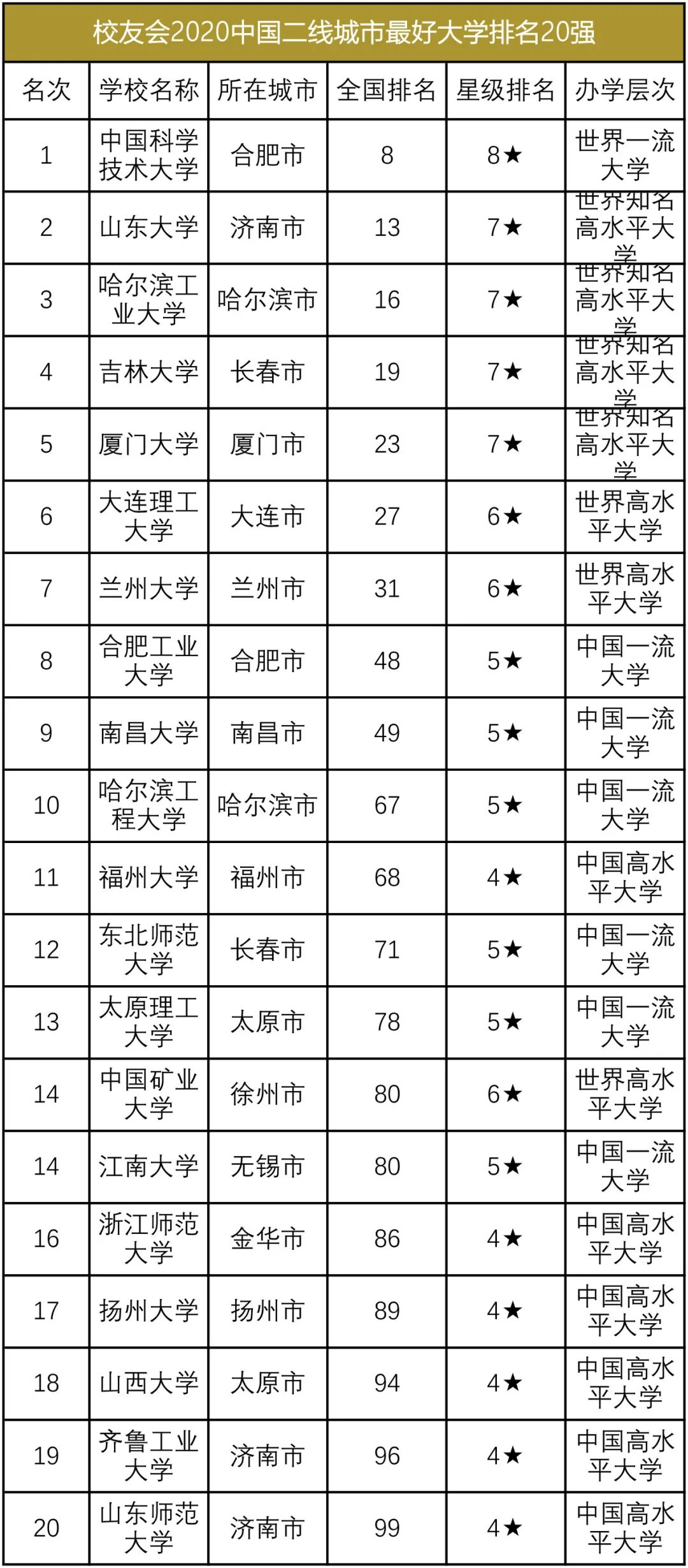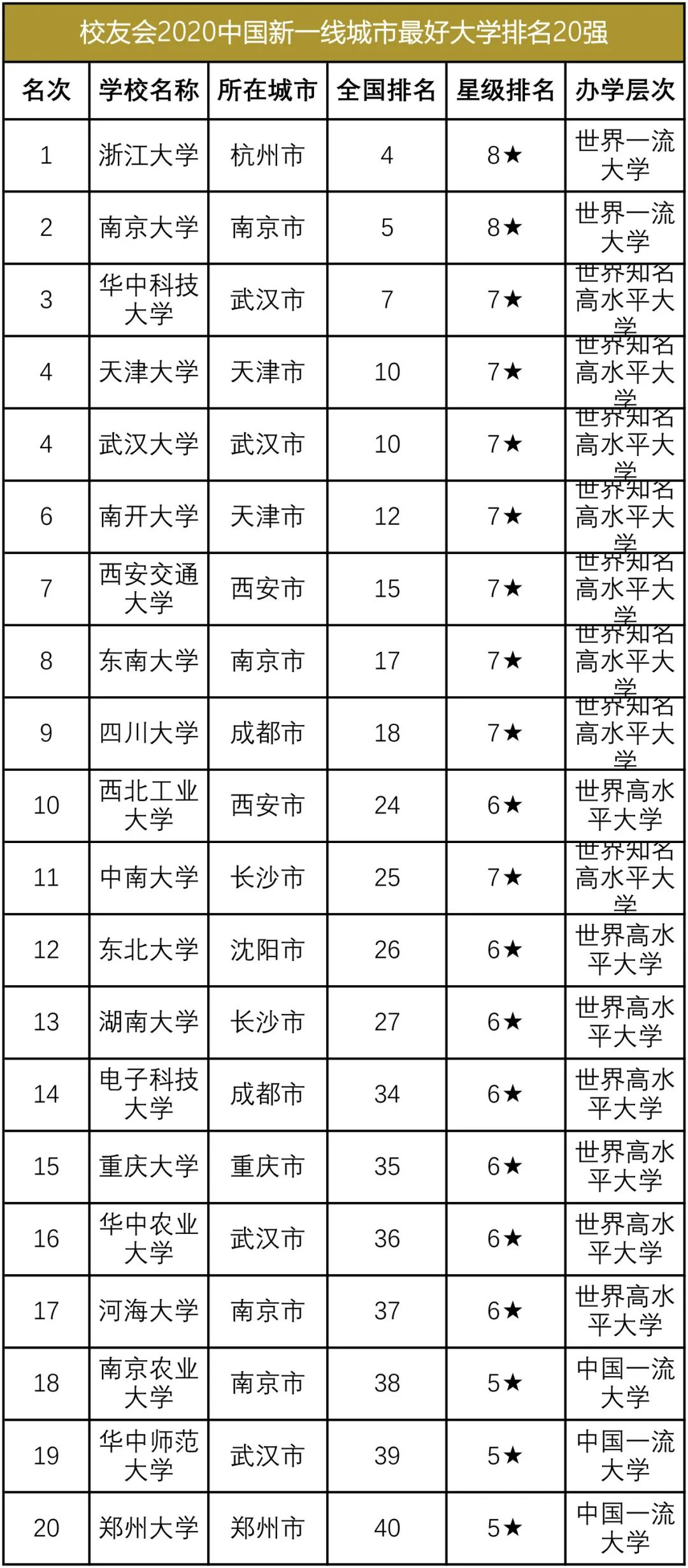 艾瑞深校友会大学排名发布在2020城市魅力排行榜发布之前,它发布的二线城市和新一线城市是在2019年数据基础上。每一年新一线城市排名会有所变化。