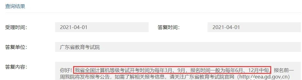 ▎广东教育考试院:我省全国计算机等级考试开考时间为每年3月、9月,报名时间一般为每年6月、12月中旬。
