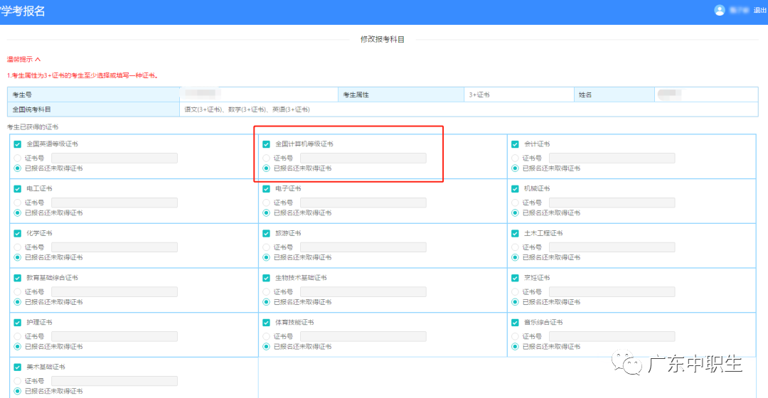 【证书补填通知】3+证书考生现可自行登录报名系统补填!