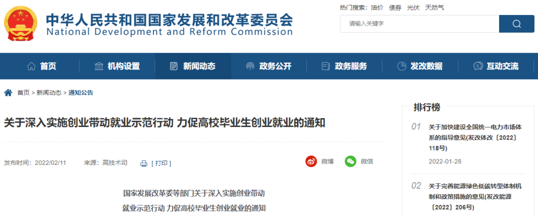 2022届全国高校毕业生预计1076万人,年度人数首次超过千万人。如何解决千万高校毕业生就业创业问题?日前,国家发改委等八部门联合印发《关于深入实施创业带动就业示范行动力促高校毕业生创业就业的通知》