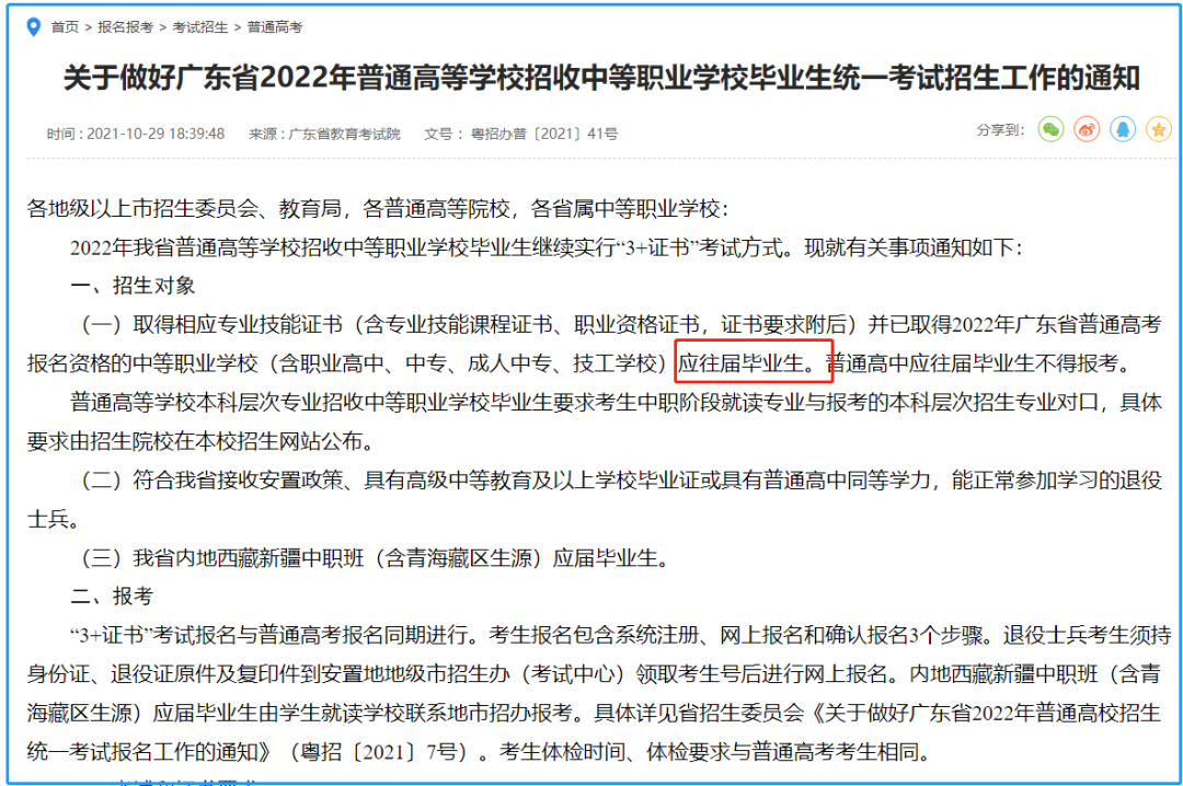 就能知道《通知》并未特殊强调往届生报考及录取的附加条件。并且截至目前,广东省教育考试院没有发布关于复读限制的文件公告。