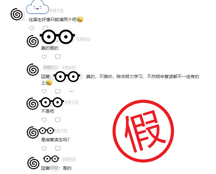 这些谣言每年都会有,还传得以假乱真,令部分“二战”的考生为此忧心忡忡,其实跟一些复读考生的个人压力也有关系。