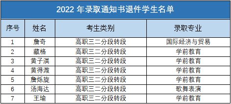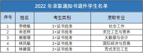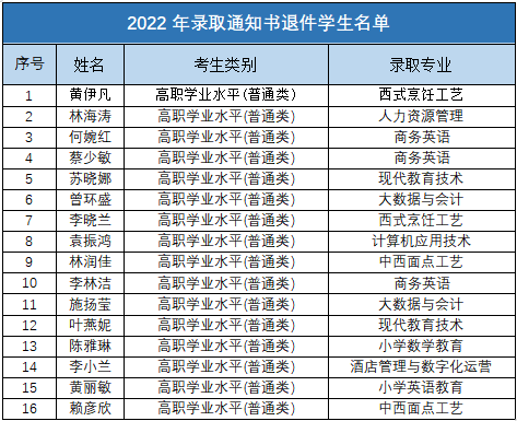 由于录取通知书收件人通讯方式变更等原因,下列同学的录取通知书已被退回我校。
