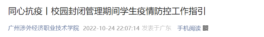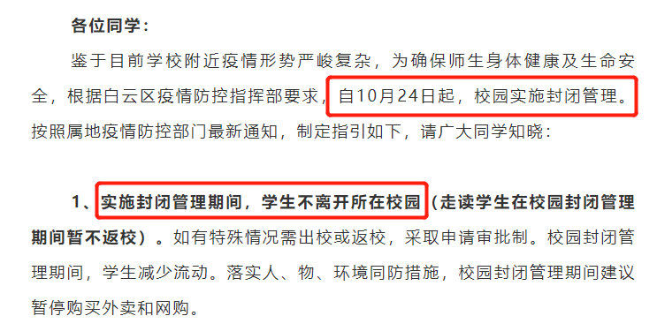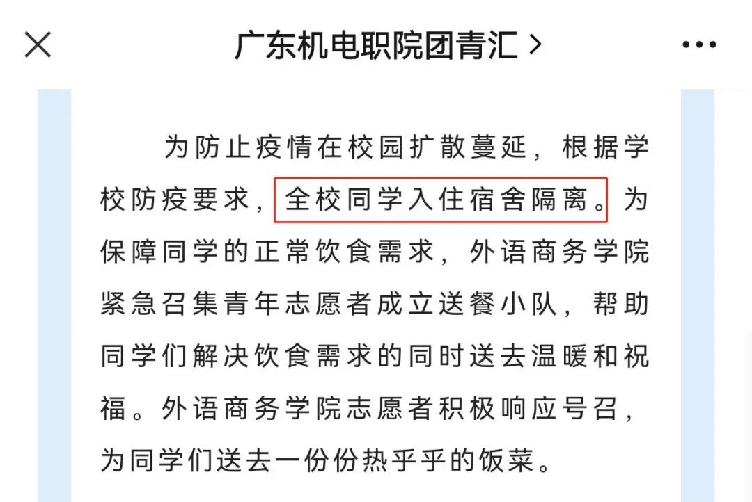 广东环境保护工程职业学院被划入临时管控区域,要进行封闭管理,实行“足不出户,上门服务”。
