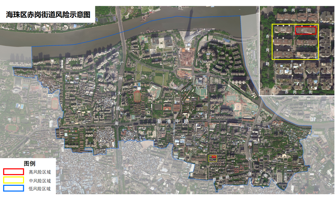 三、低风险区:赤岗街道全域(除高、中风险区外),实行“个人防护,避免聚集”等防控措施。