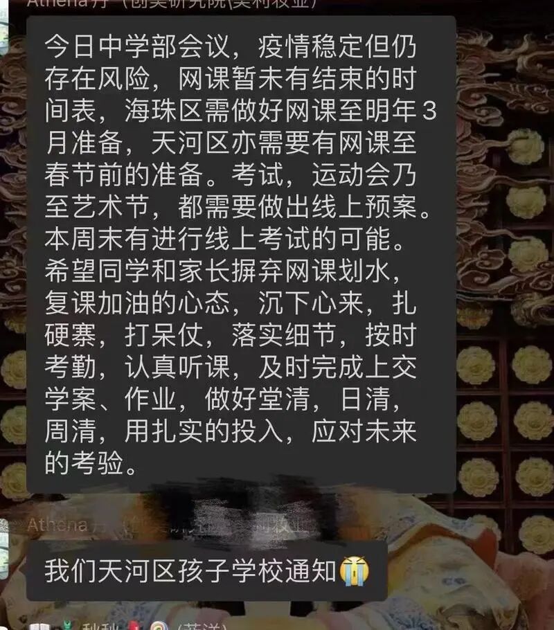 学校疫情防控及线上教学工作安排,一律执行市、区教育行政部门的通知要求。请广大师生员工、家长、同学不信谣、不传谣、不造谣,以广州市教育局、天河区教育局以及学校官方发布的信息为准。