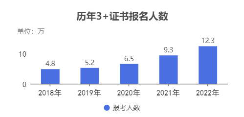 近几年3+证书的报名人数及招生人数对比