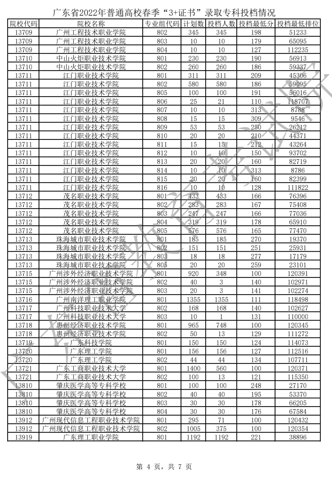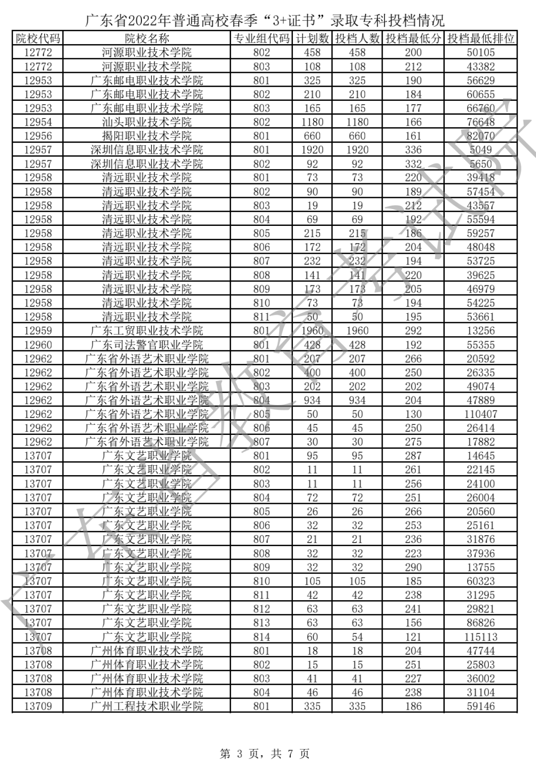 广东省2022年普通高校春季分类考试(“3+专业技能课程证书”)招生录取最低分数线如下: