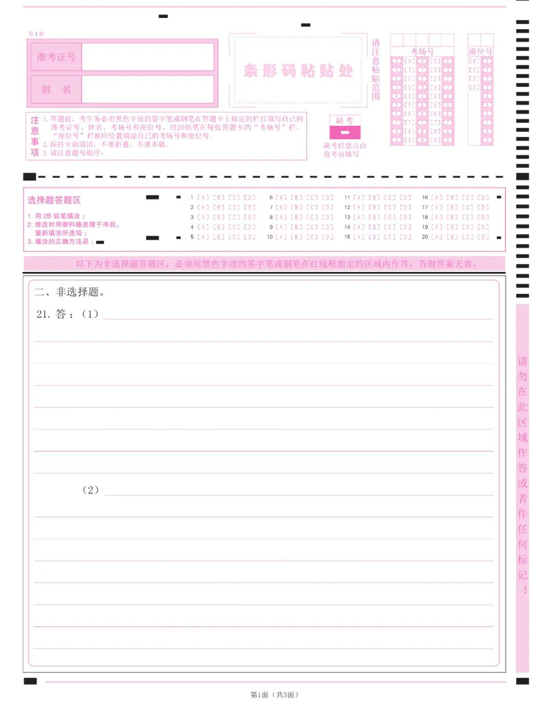 重要提醒:以上答题卡以实际有小小差异,仅为参考样卡图。