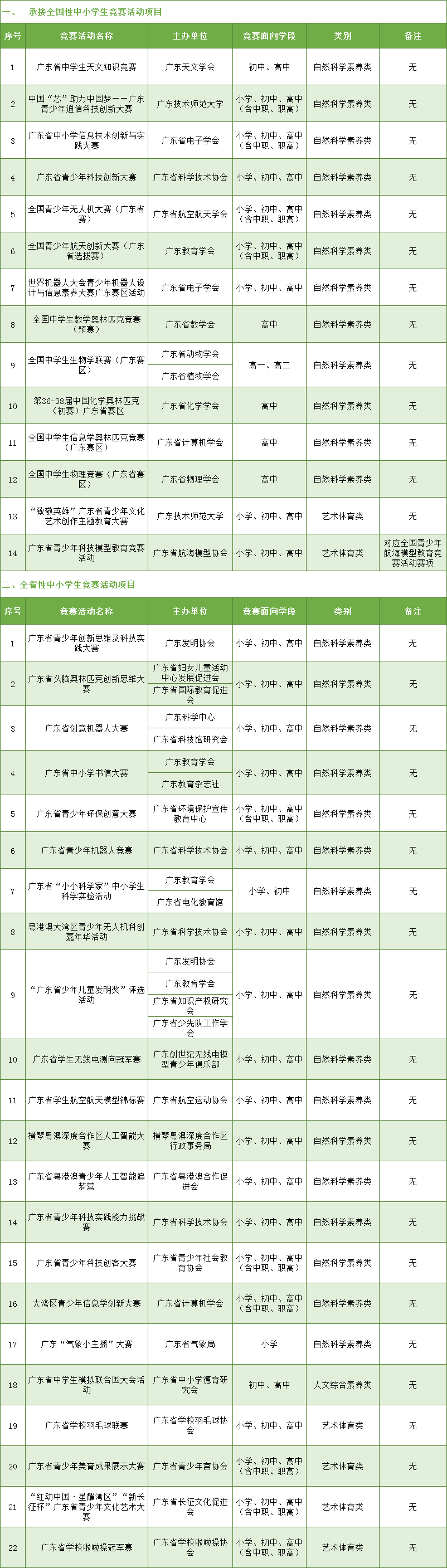 省教育厅发布《关于公布2022-2025学年面向中小学生的全省性竞赛活动的通知》,确定广东省中学生天文知识竞赛等36项竞赛活动为2022-2025学年面向中小学生的全省性竞赛活动,举办时间原则上为2022年12月至2025年8月,在此期间每学年举办不得超过1次,累计不超过3次。竞赛以及竞赛产生的结果不得作为中小学招生入学的依据。