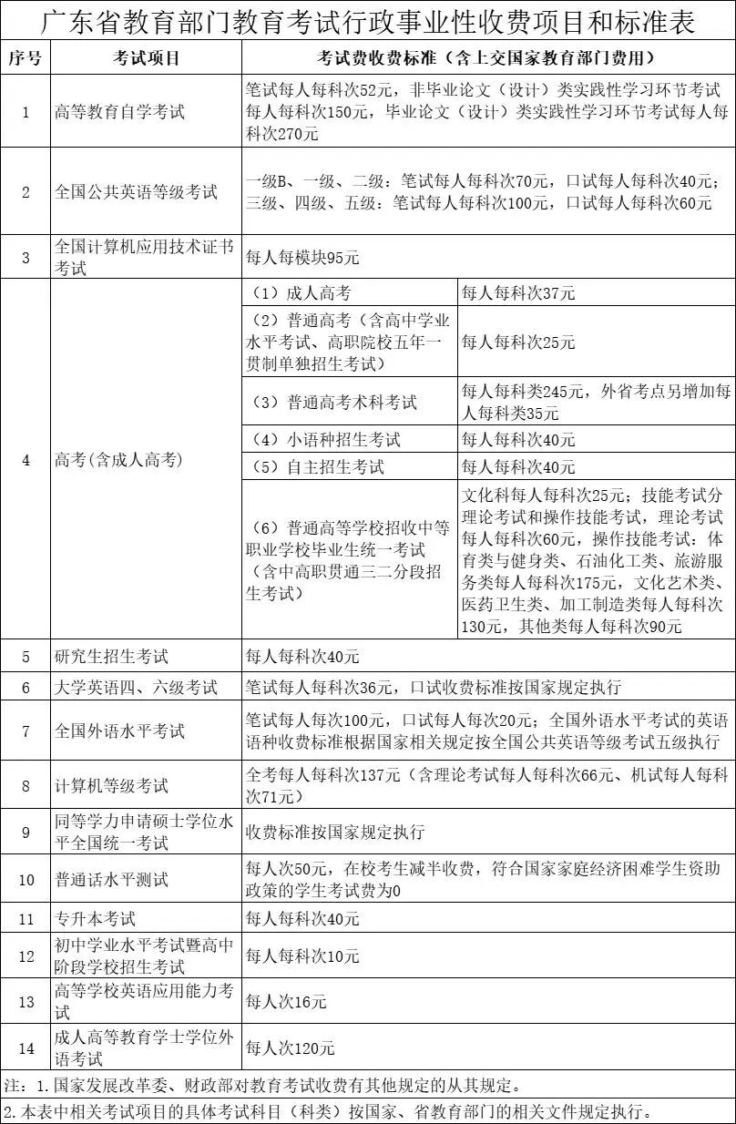 其实早在去年12月,广东省发改委就公布了《关于规范全省教育部门教育考试行政事业性收费及有关问题的通知》。