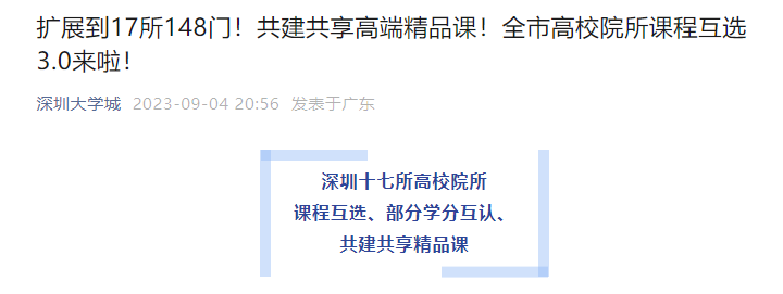 热点资讯 > 扩到17所148门!含深职、深信,深圳高校院所课程互选重磅出炉!