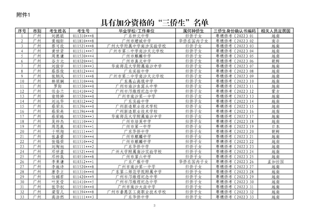 1.“三侨生”:在本、专科录取时可加5分投档。