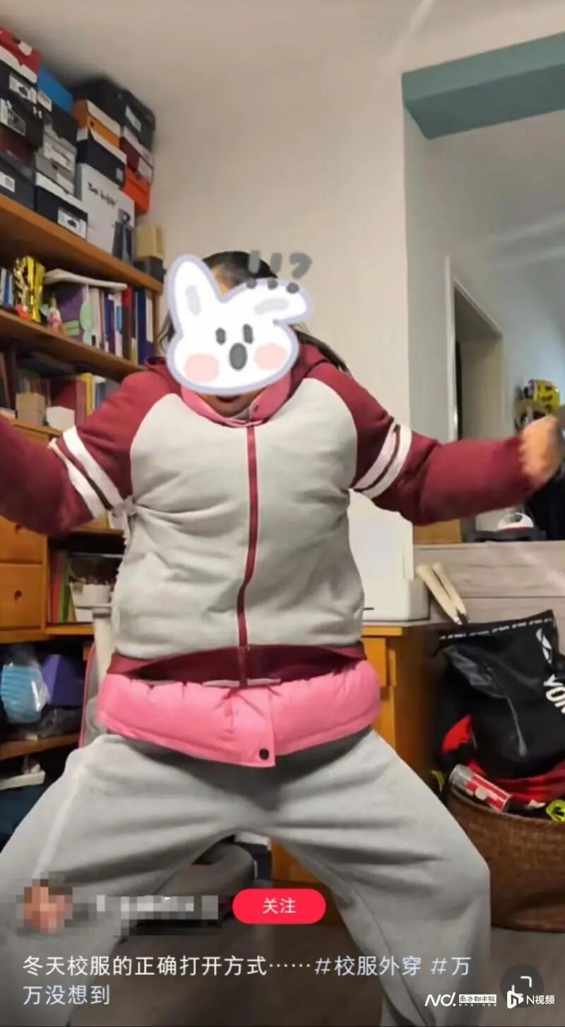 △有学生发布视频表示,有学校要求必须把校服穿在外套外面,学生们纷纷肿成“米其林轮胎人”。图据网络