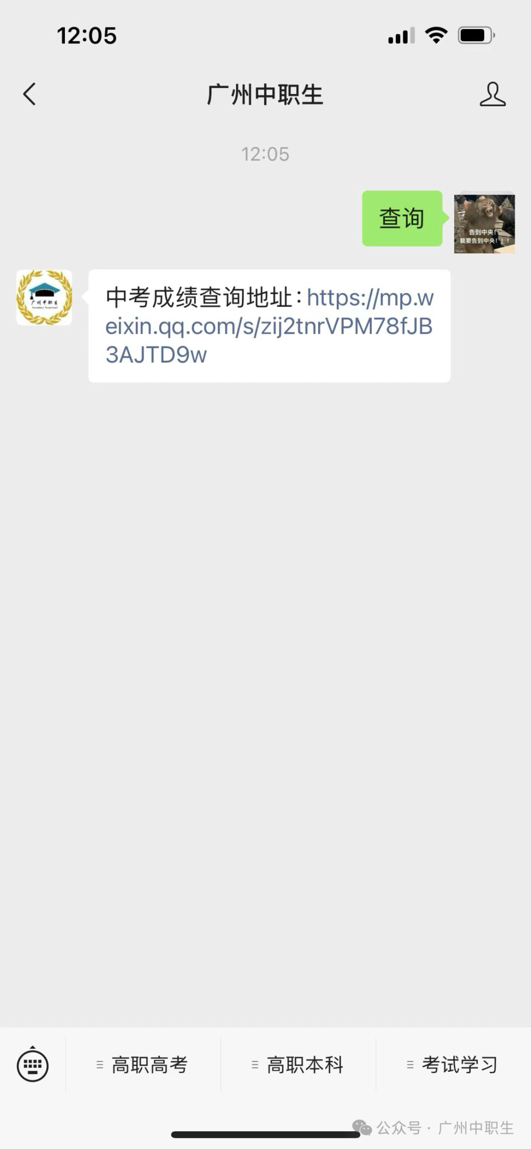直接在公众号对话框回复“查询”即可快速进入广州招考网的查询通道,可以查询成绩哦!
