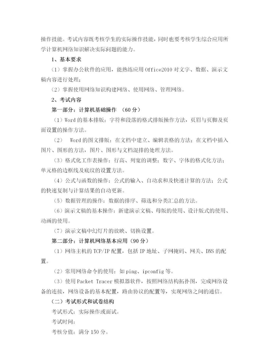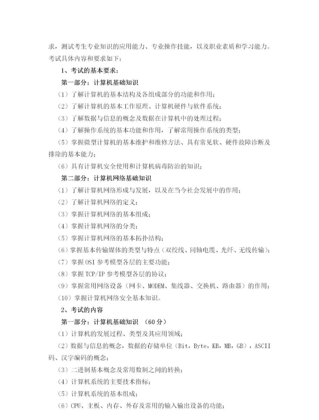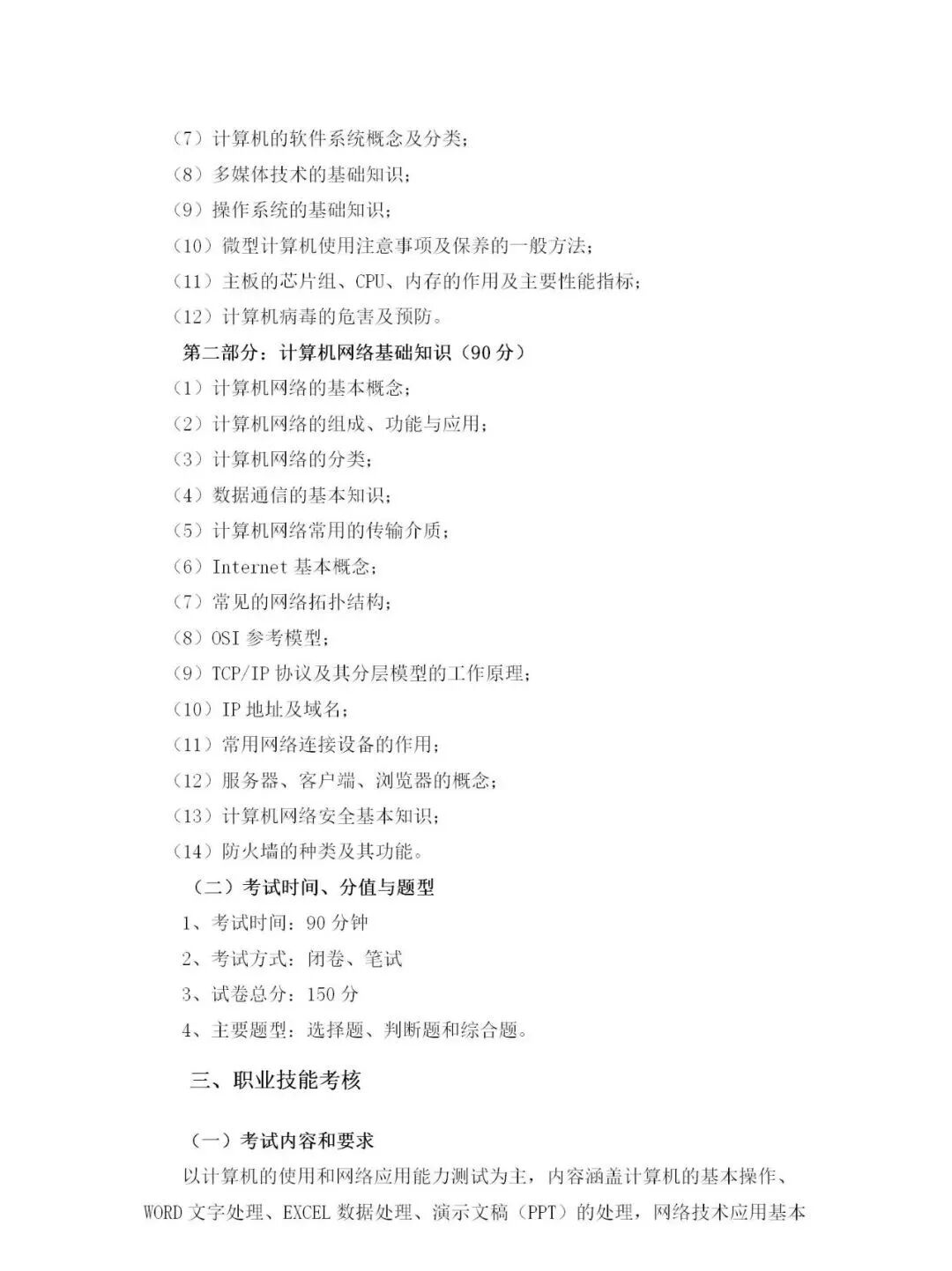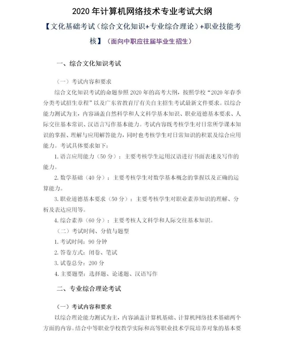 2020年计算机网络技术专业考试大纲