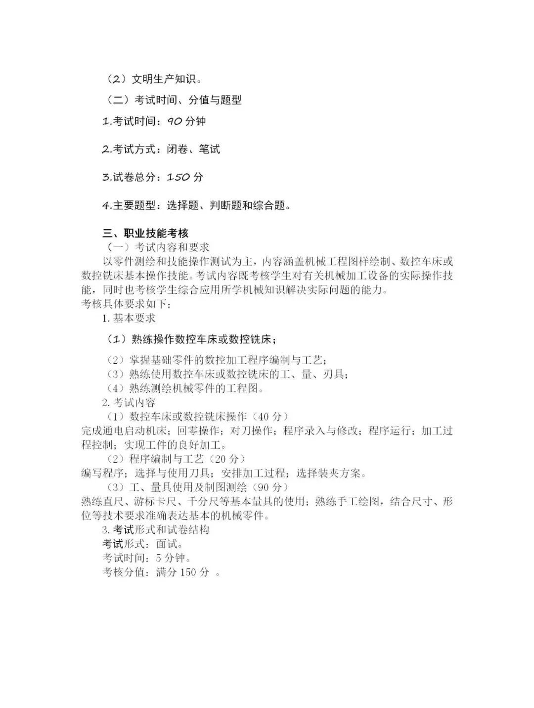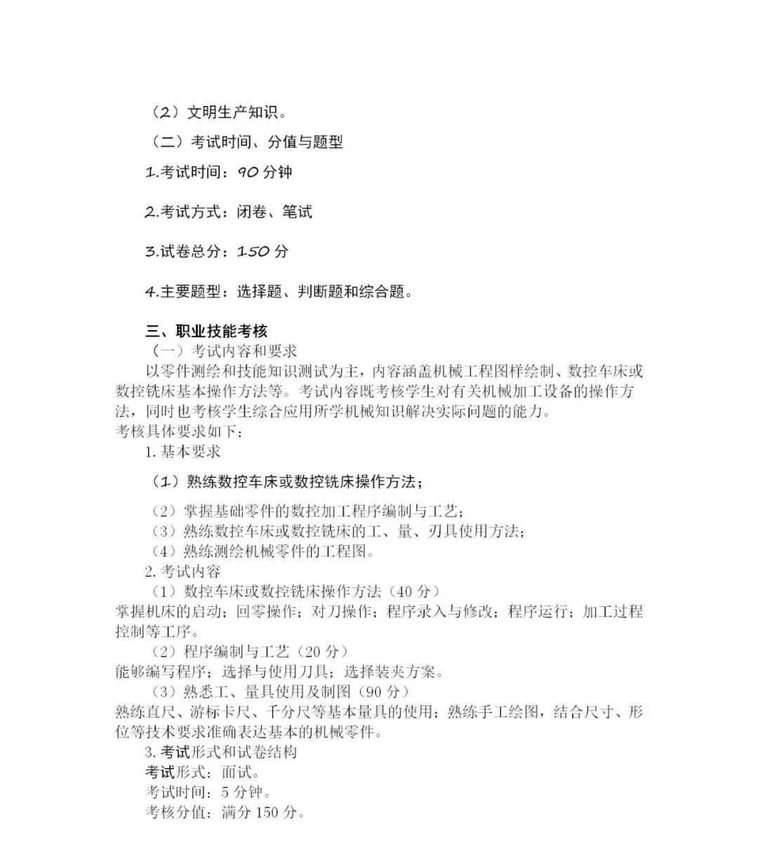 2020年数控技术专业考试大纲