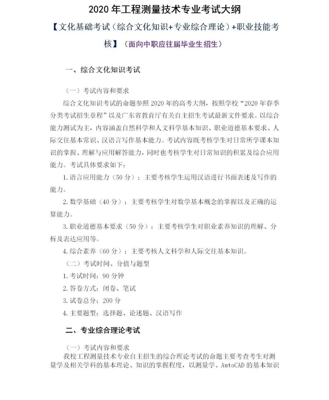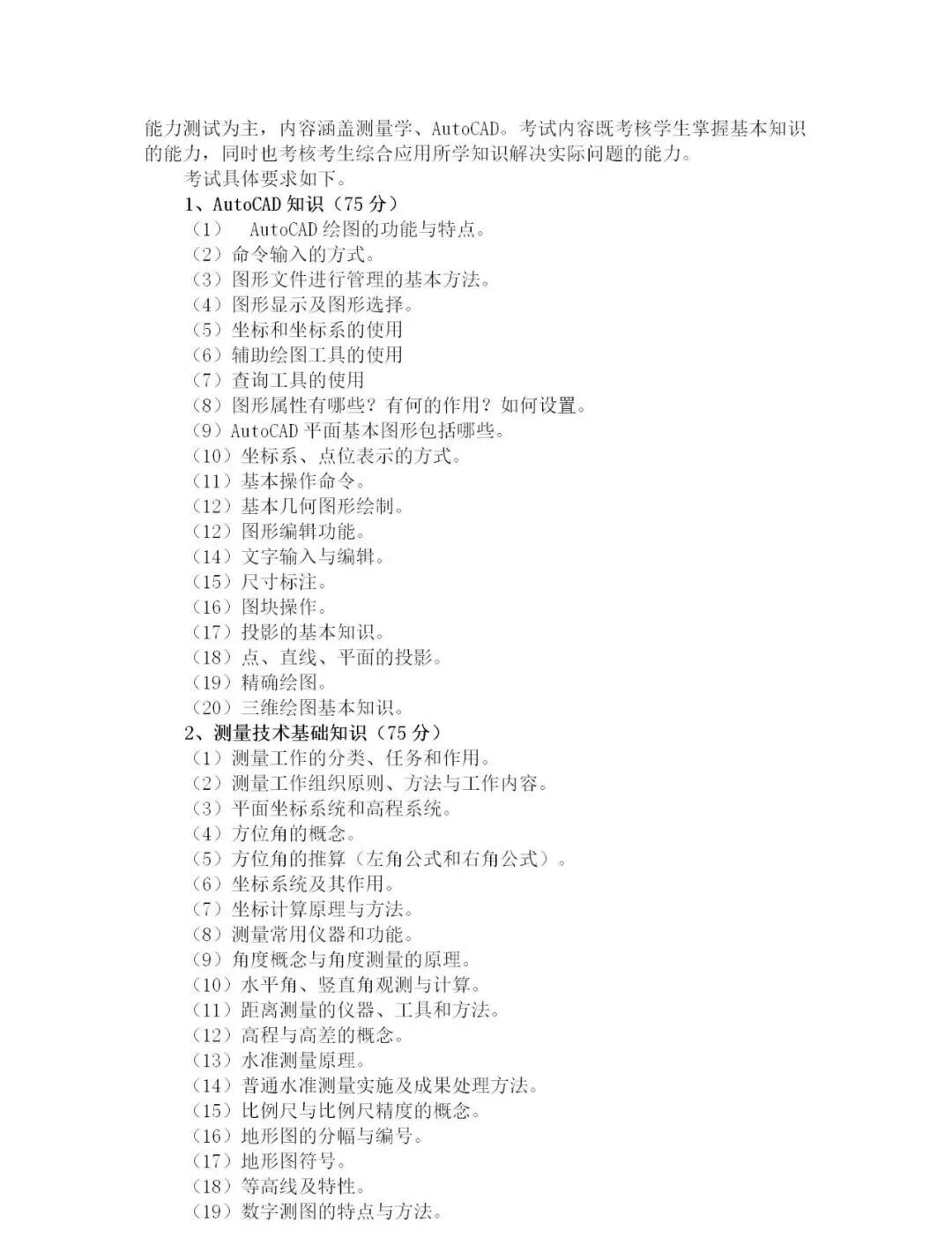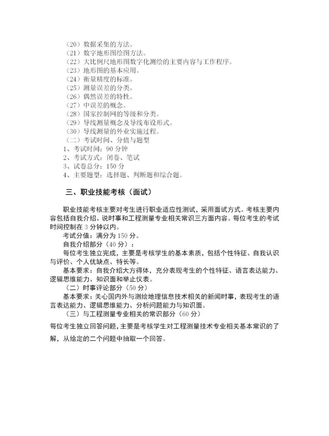 2020年工程测量技术专业考试大纲