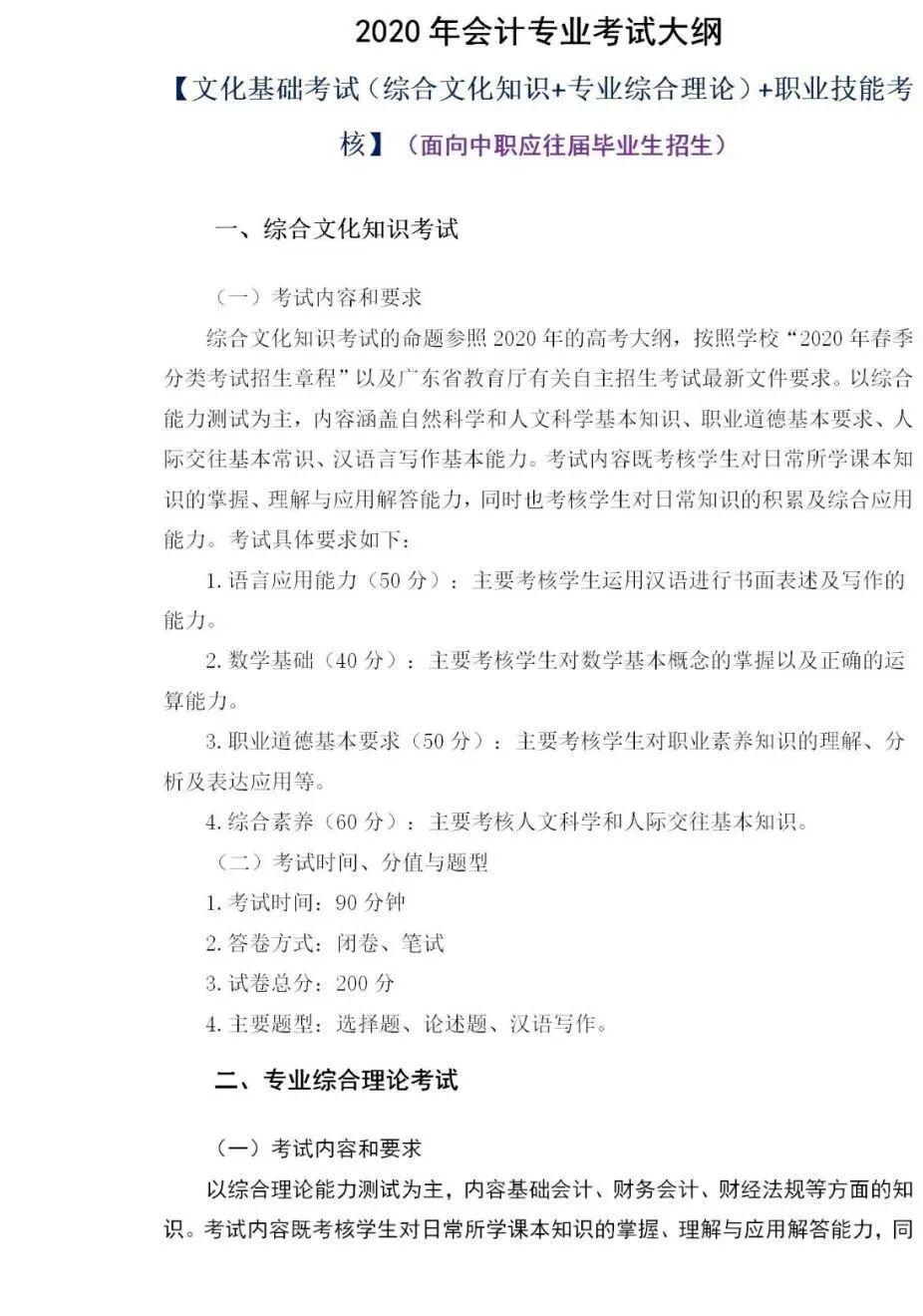 2020年会计专业考试大纲