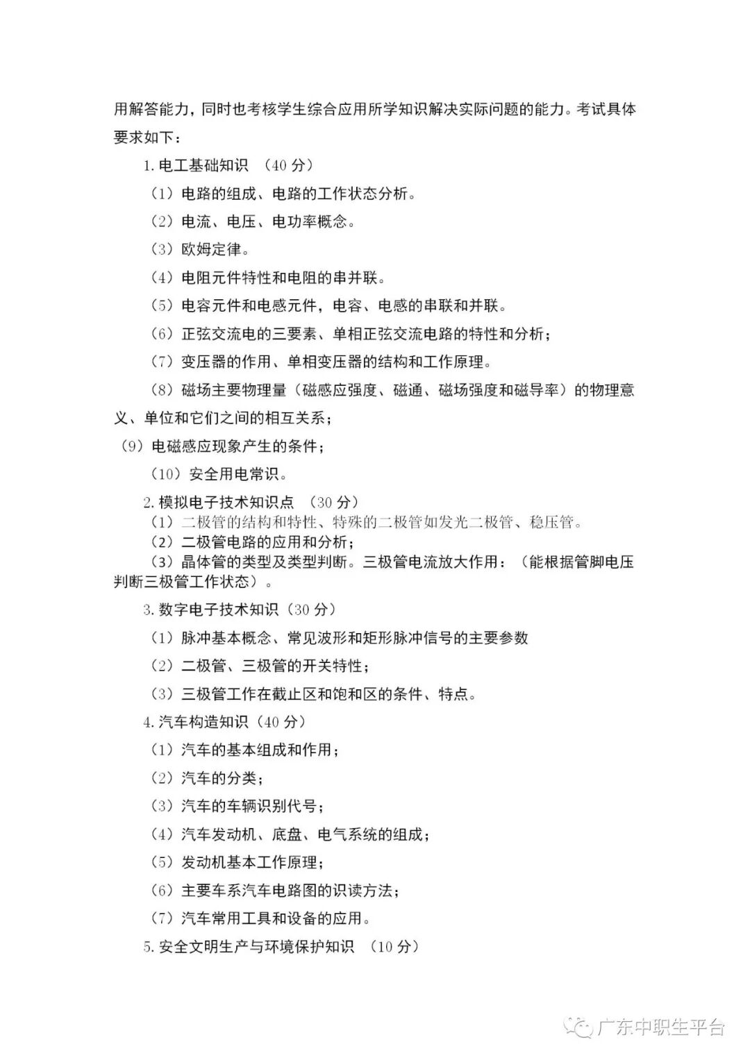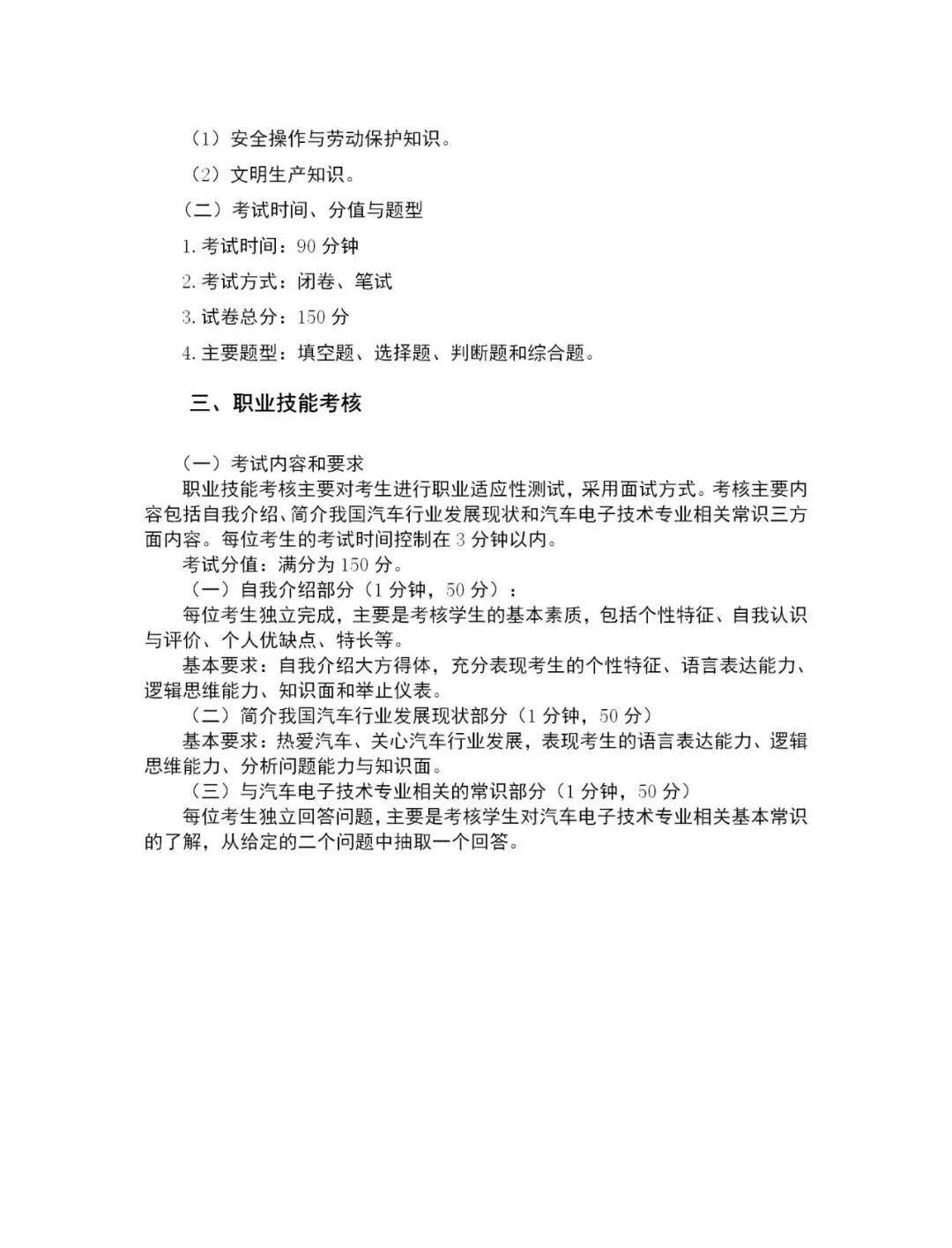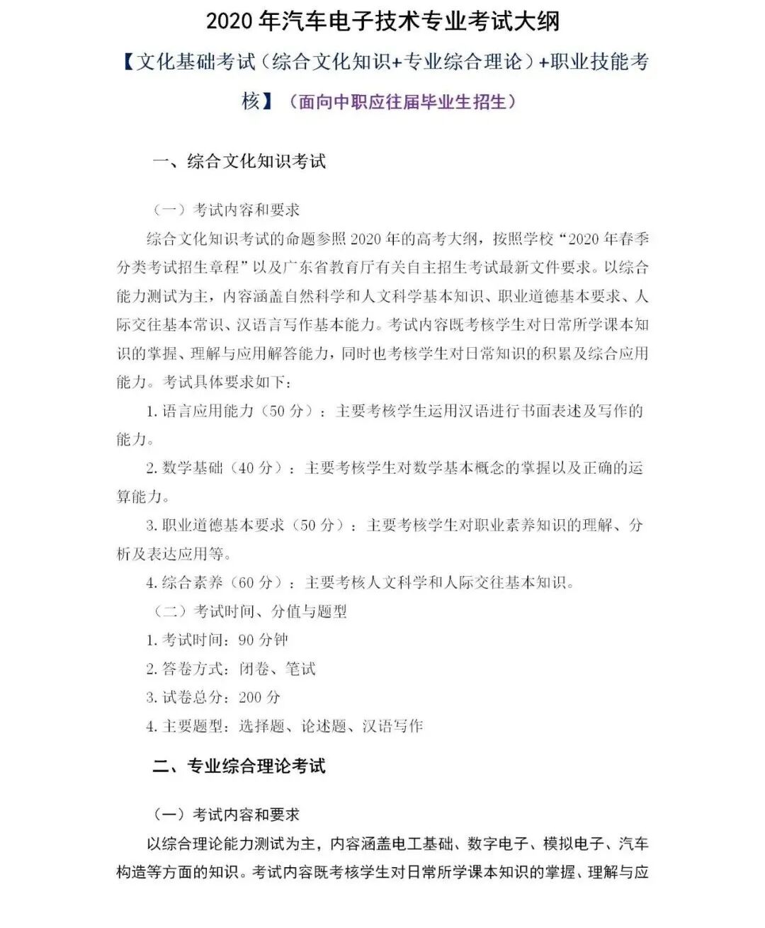2020年汽车电子技术专业考试大纲