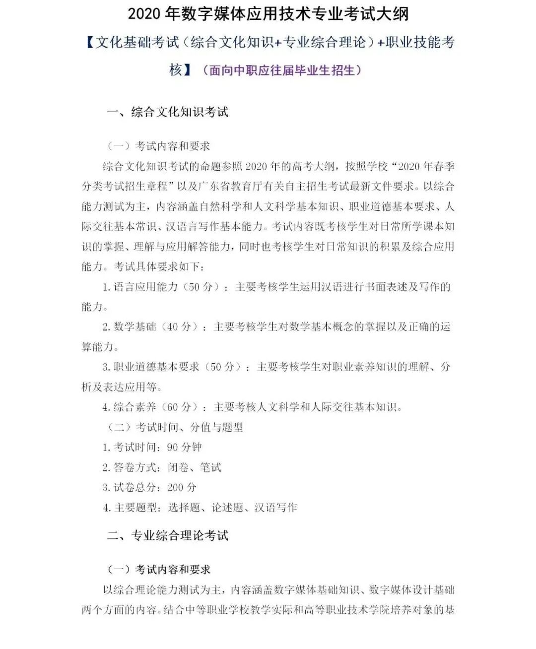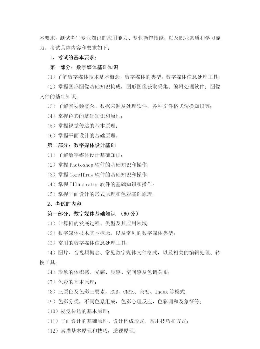 2020年数字媒体应用技术专业考试大纲