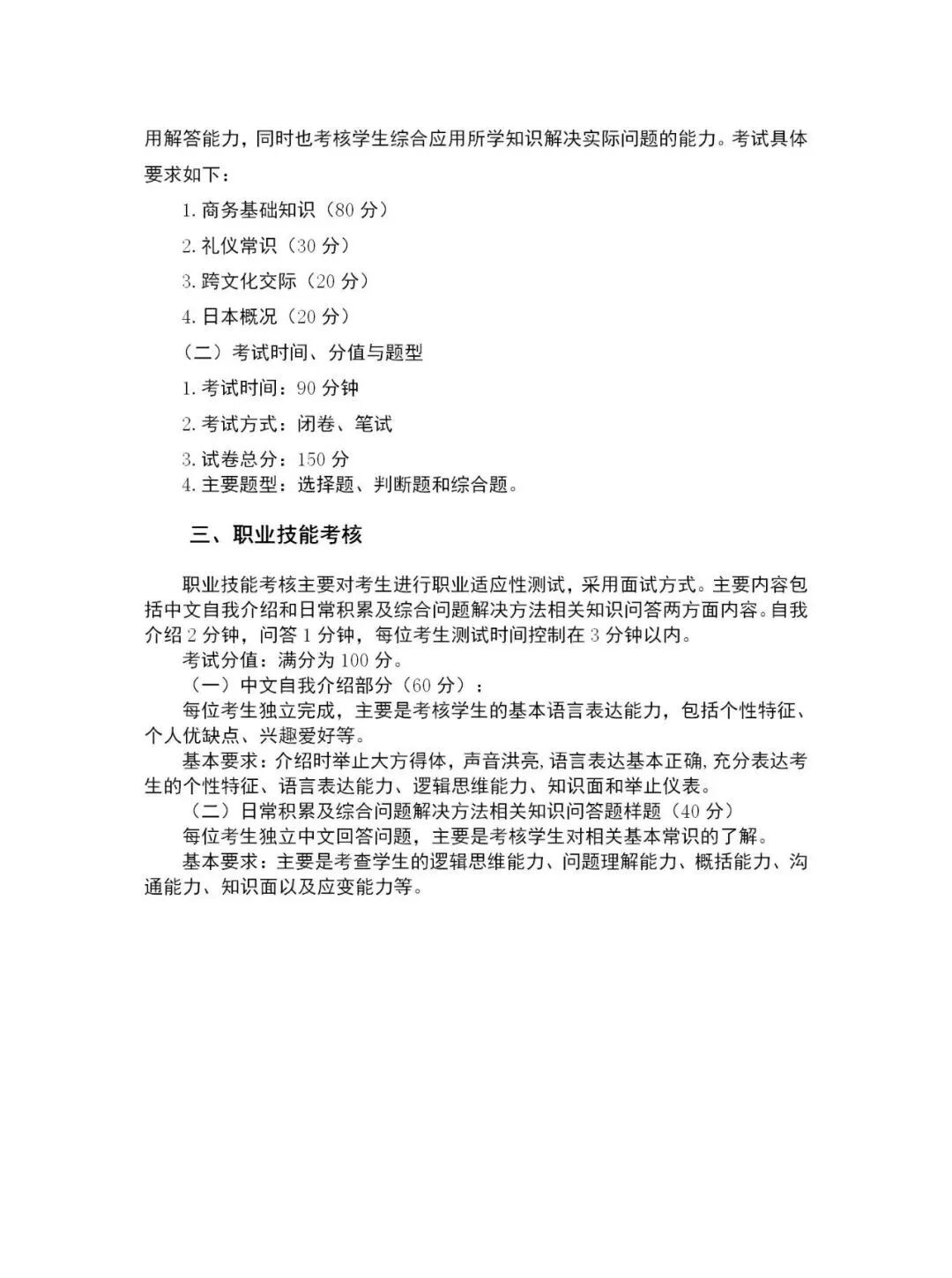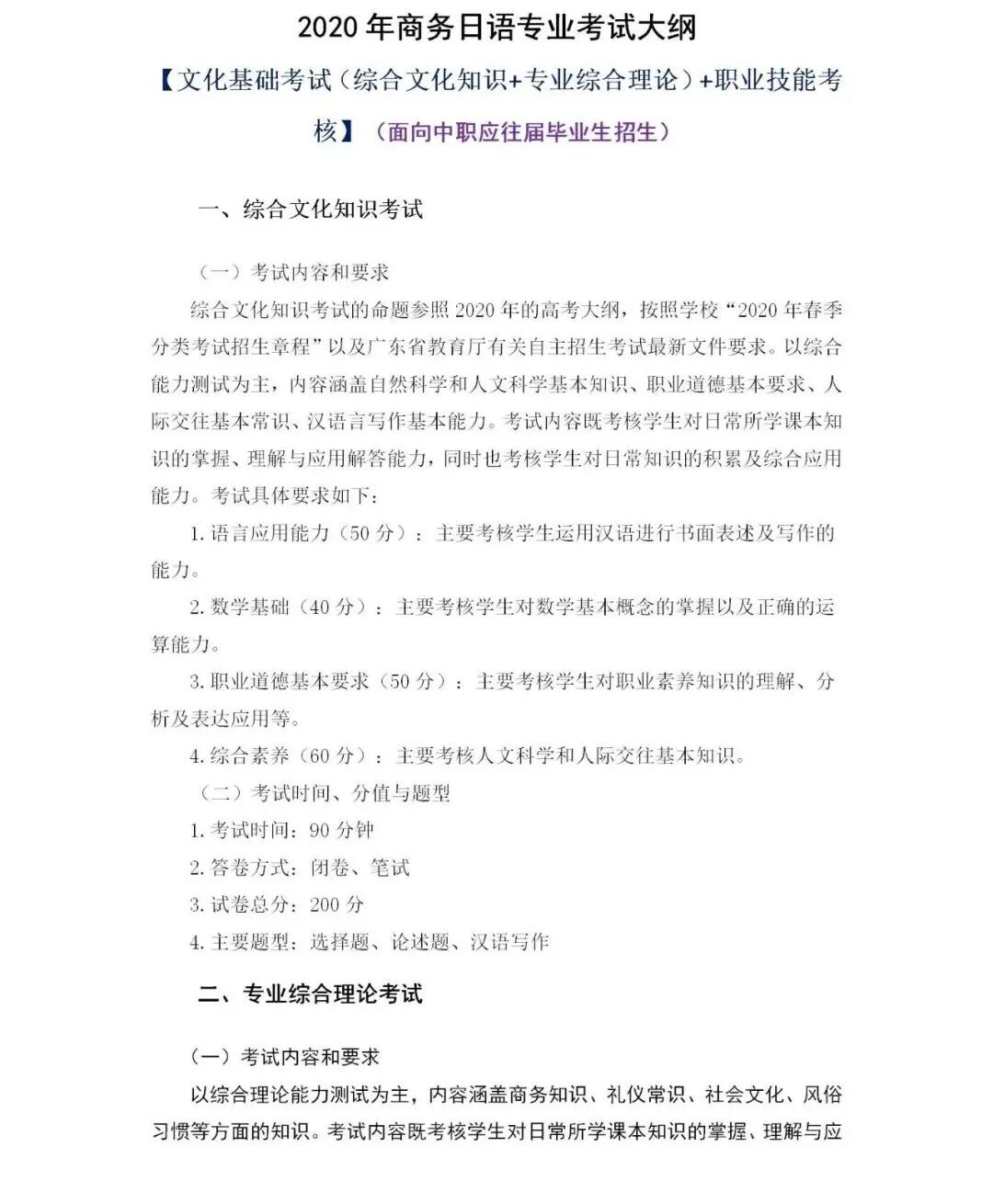 2020年商务日语专业考试大纲