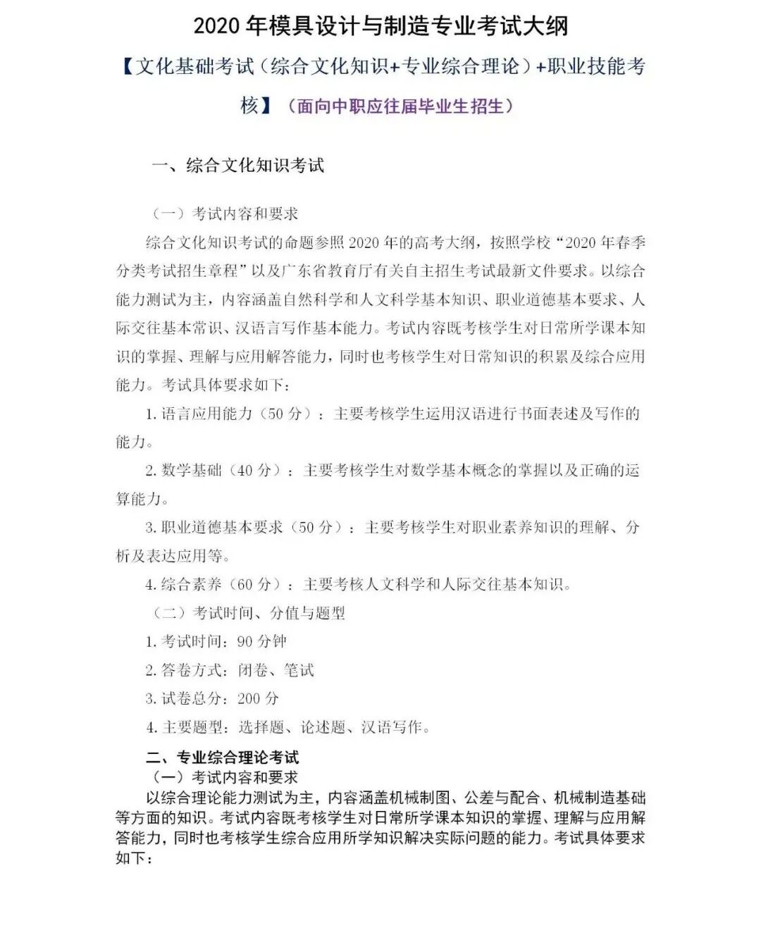2020年模具设计与制造专业考试大纲