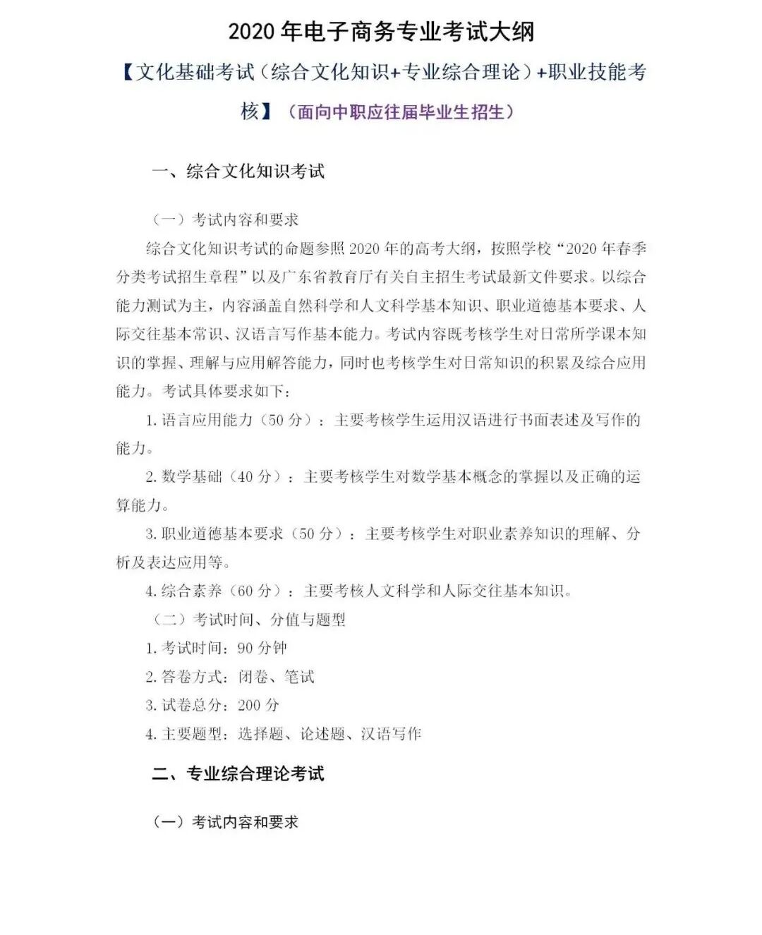 2020年电子商务专业考试大纲