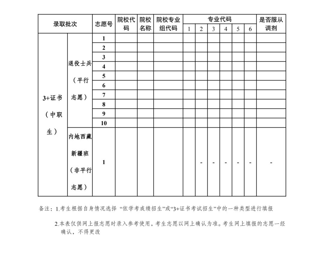 提前曝光!3+证书补录志愿表长这样