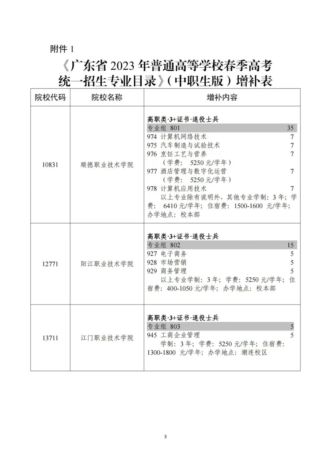 1.《广东省2023年普通高等学校春季高考统一招生专业目录》(中职生版)增补表