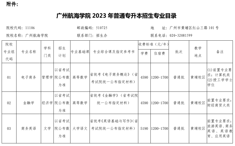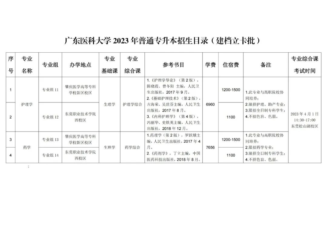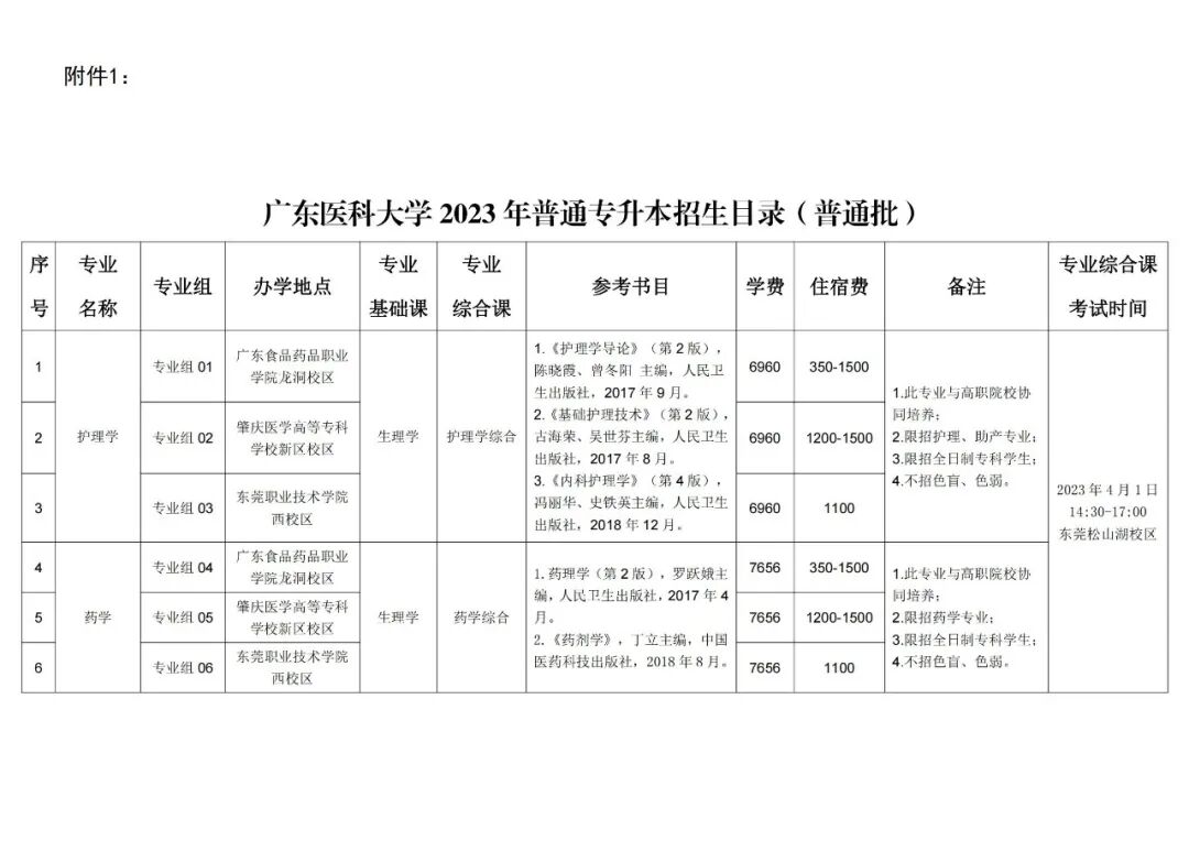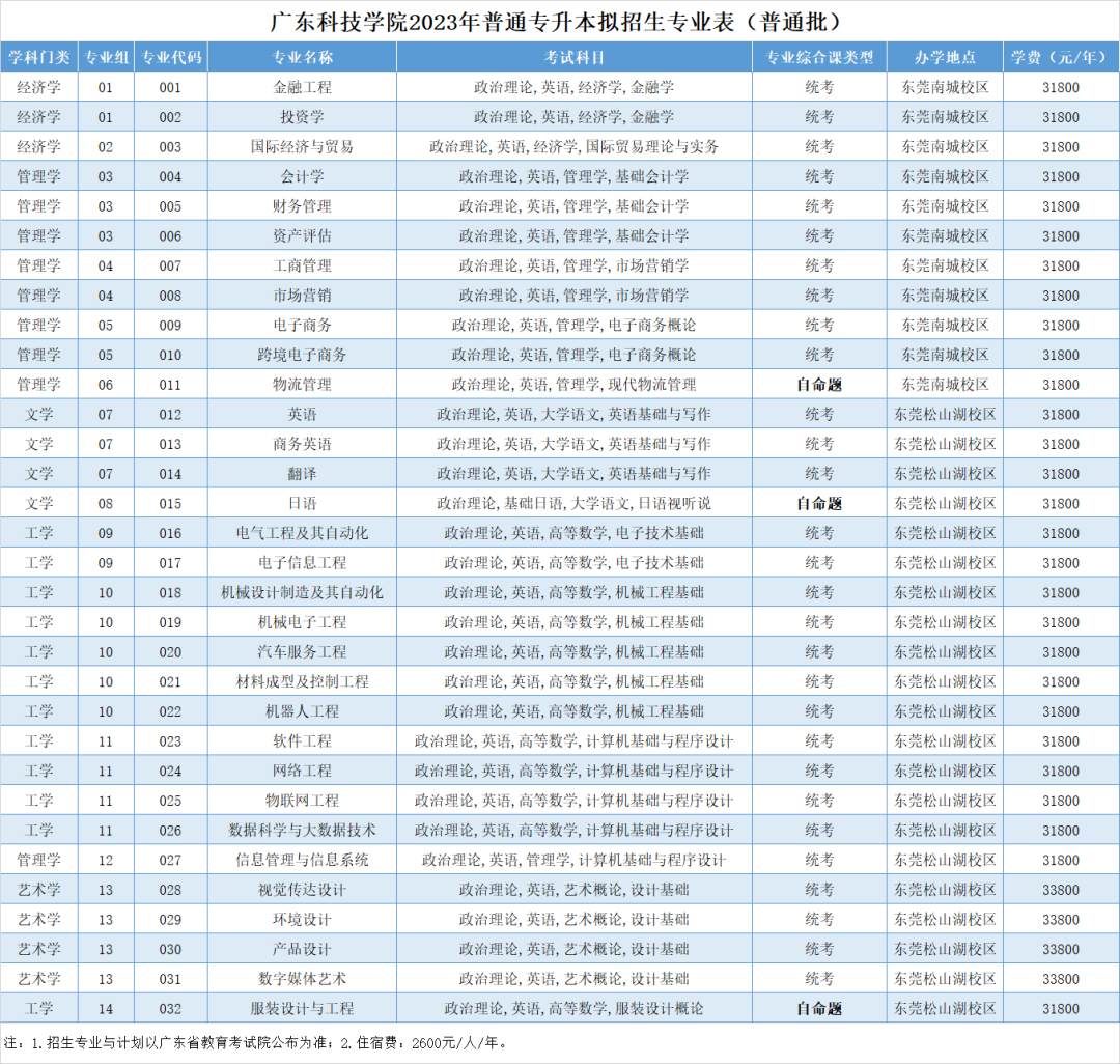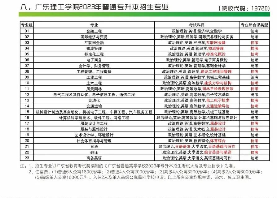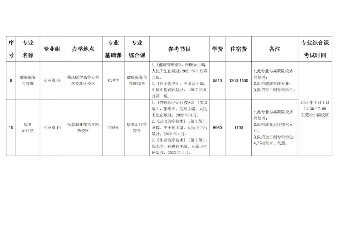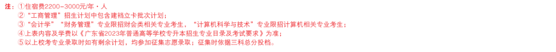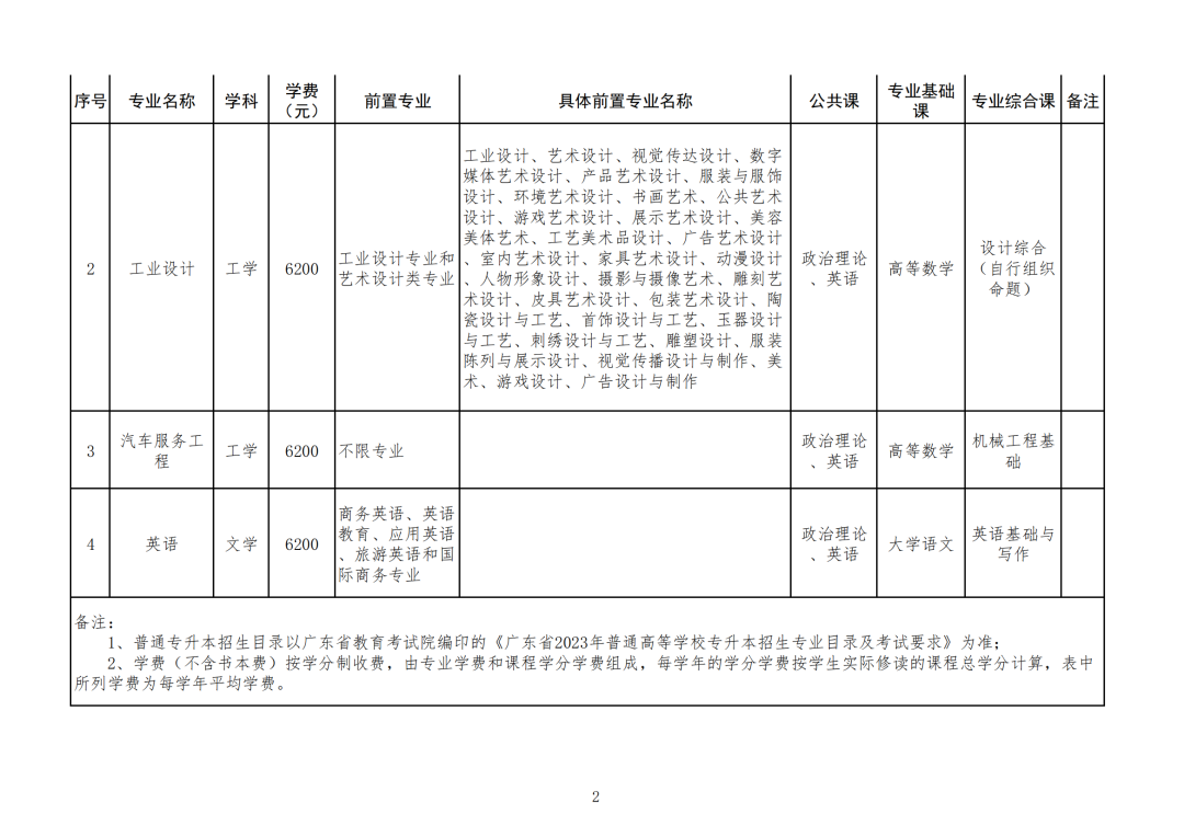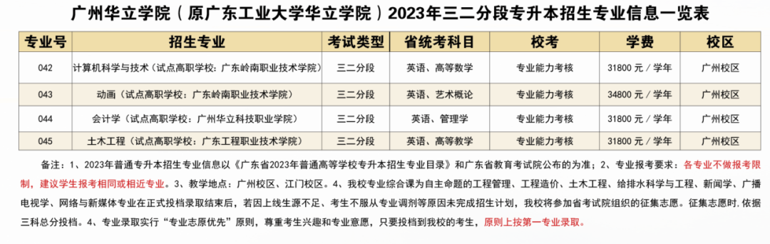 注:1.各招生专业、考试科目、收费标准及说明以«广东省2023年普通高等学校专升本招生专业目录及考试要求»为准。
