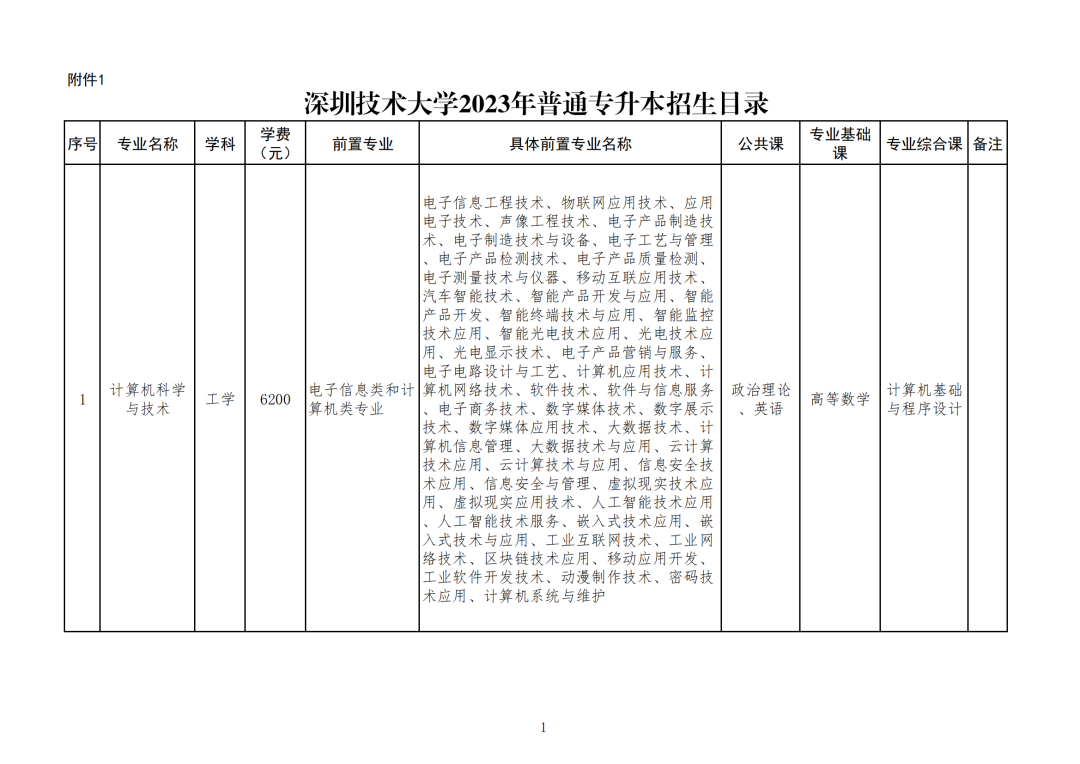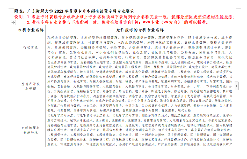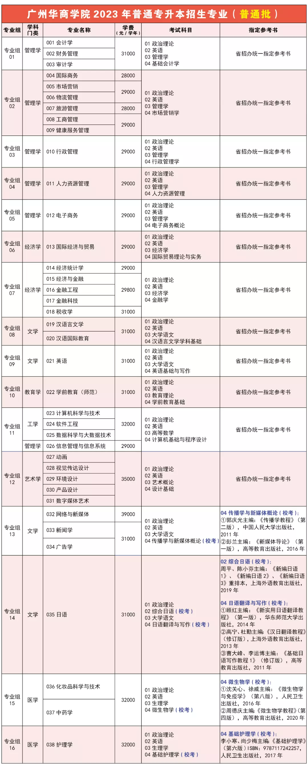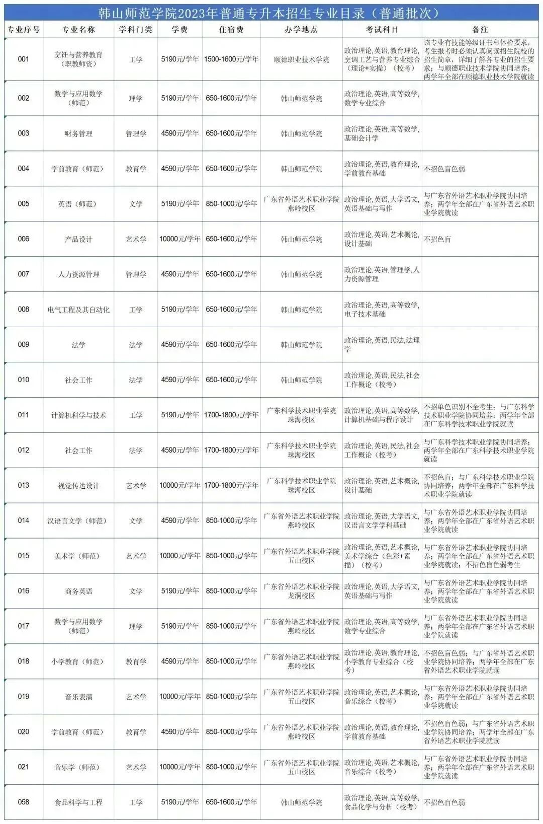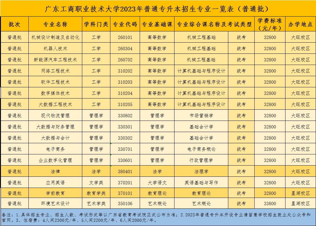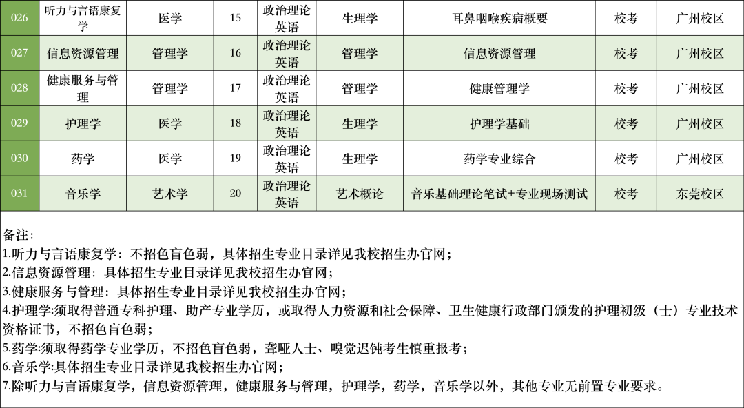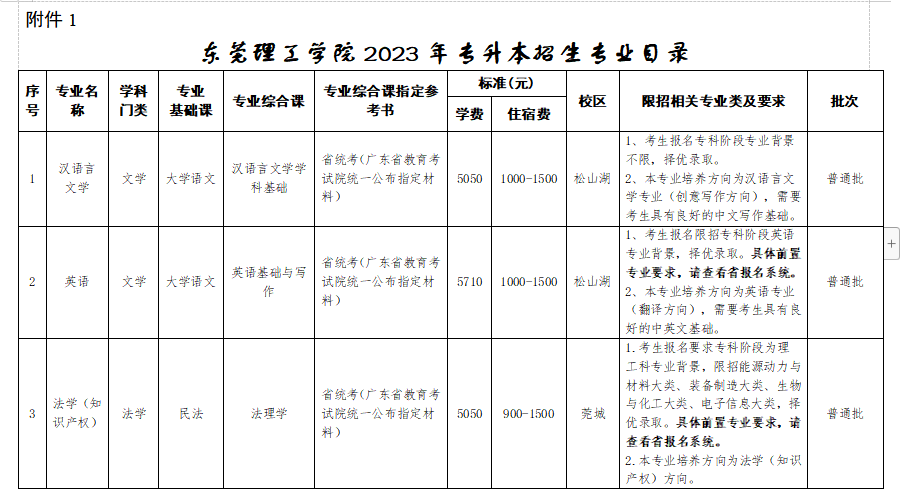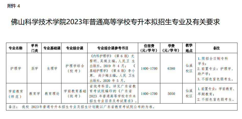 注:1.各招生专业、考试科目、收费标准及说明以«广东省2023年普通高等学校专升本招生专业目录及考试要求»为准。