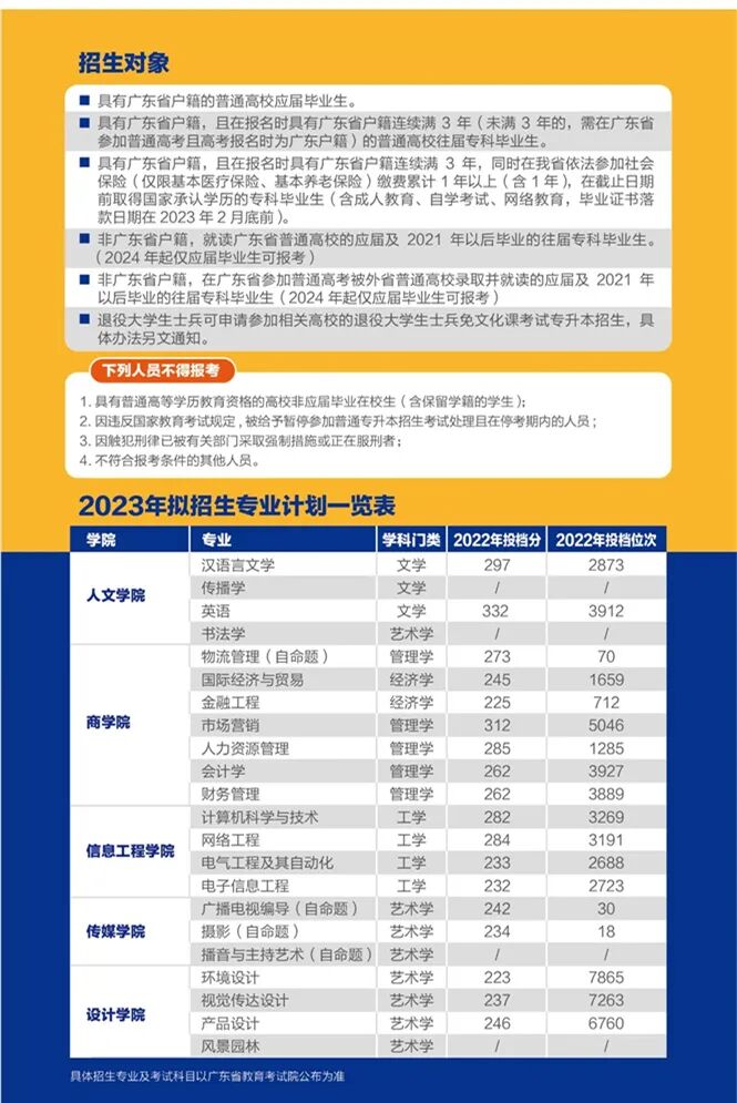 1. 2023年普通专升本实际招生专业、招生人数、收费标准、考试课程等,以广东省招生办公室、广东省教育考试院正式公布为准。