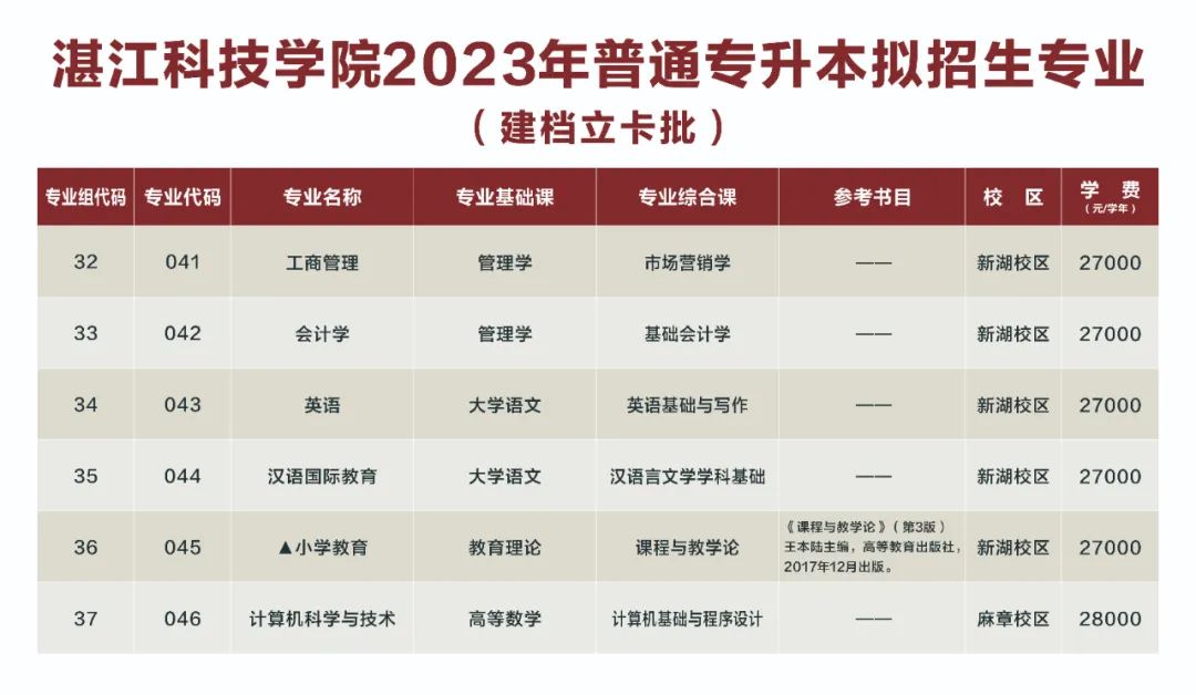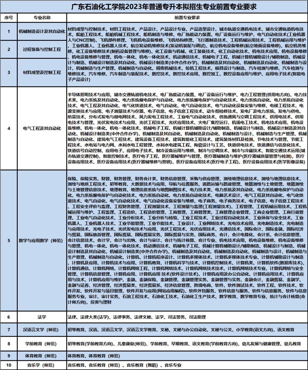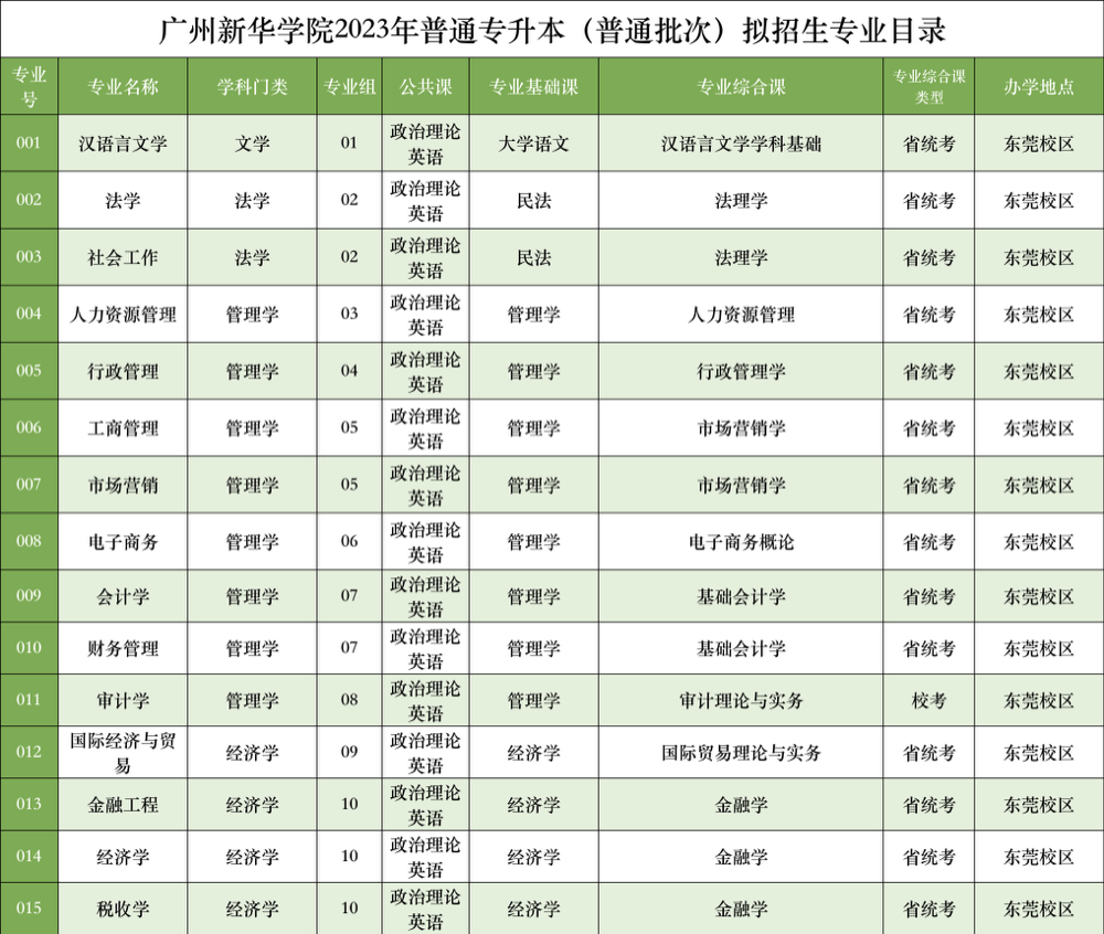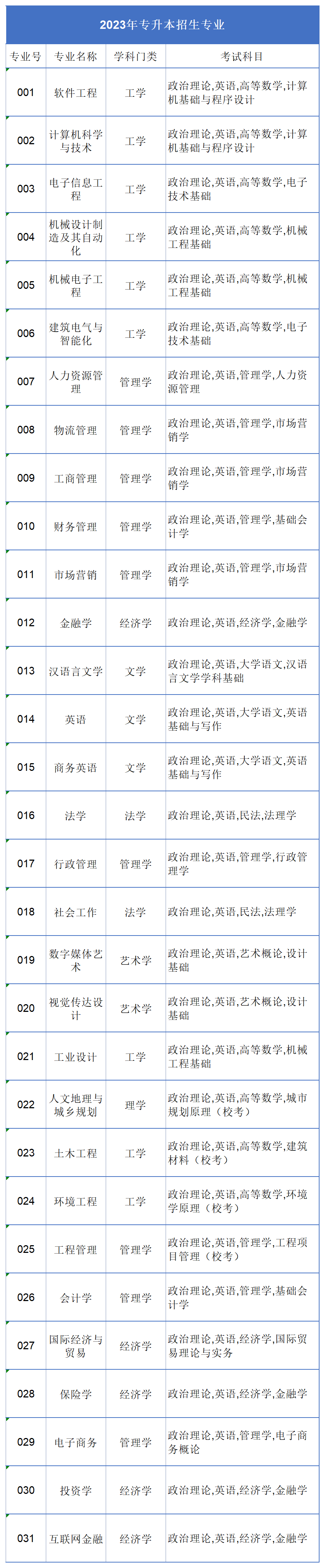 根据《广东省2023年普通高等学校专升本招生工作规定》的通知,结合学校实际情况,为方便考生备考,特此公布我校2023年专升本招生专业及考试科目。