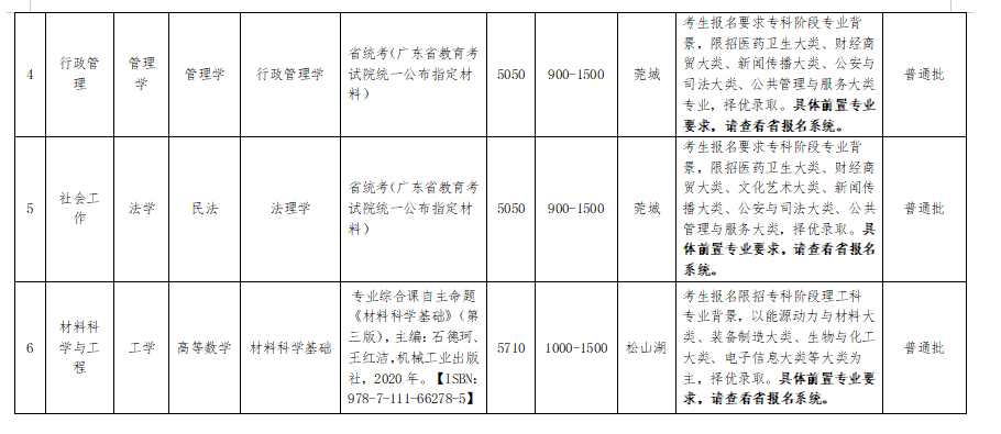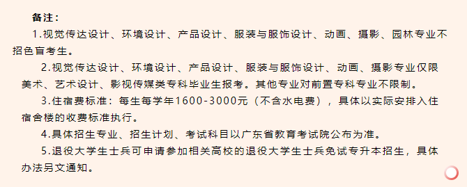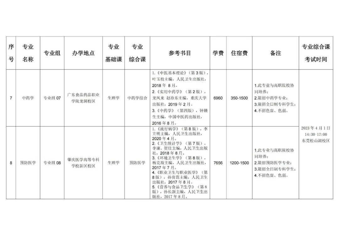 备注:1、各招生专业、考试科目,收费标准及说明以《广东省2023年普通高等学校专升本招生专业目录及考试要求》为准。