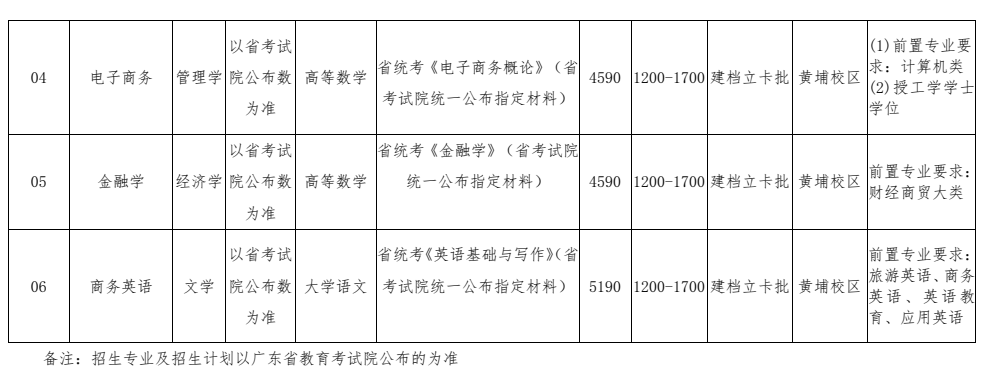 2、普通批次及建档立卡批次各专业招生计划以广东省教育考试院公布为准。